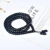 Nueva Cadena de Suéter de Joyería Onix Negro Pulsera para Pareja para Mujer Estilo Étnico de Múltiples Círculos Pulsera de 108 Cuentas Antiguas