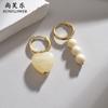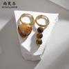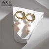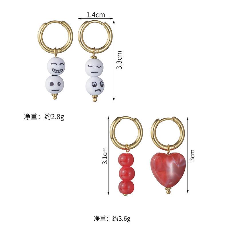 Pendientes de perlas de expresión de temperamento simple nuevos transfronterizos, pendientes de cuentas de color acero titanio de moda para mujer, venta al por mayor