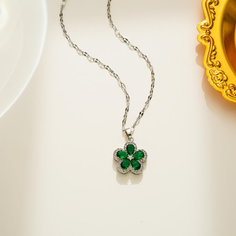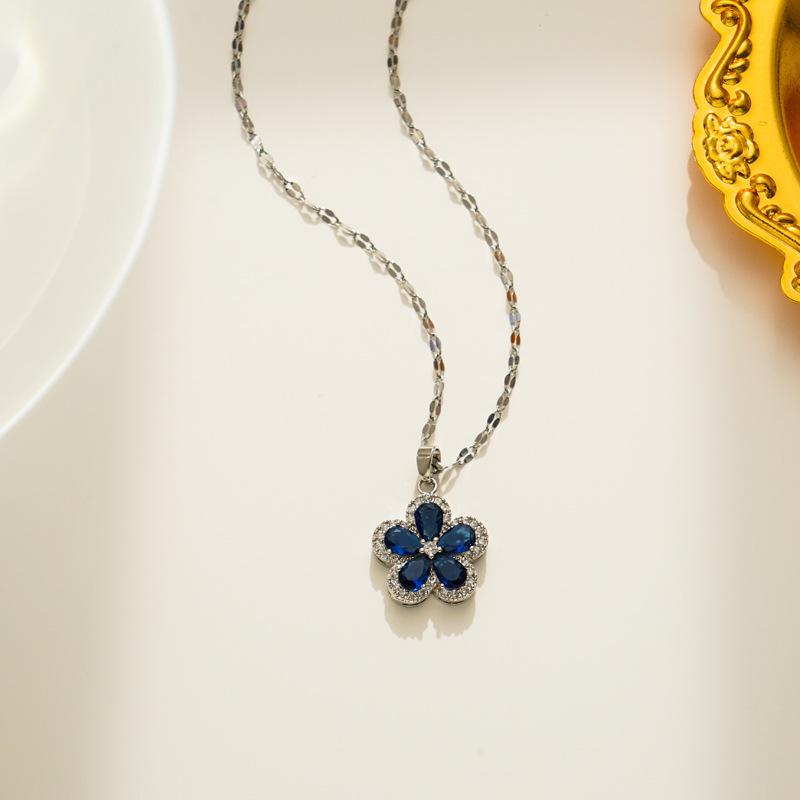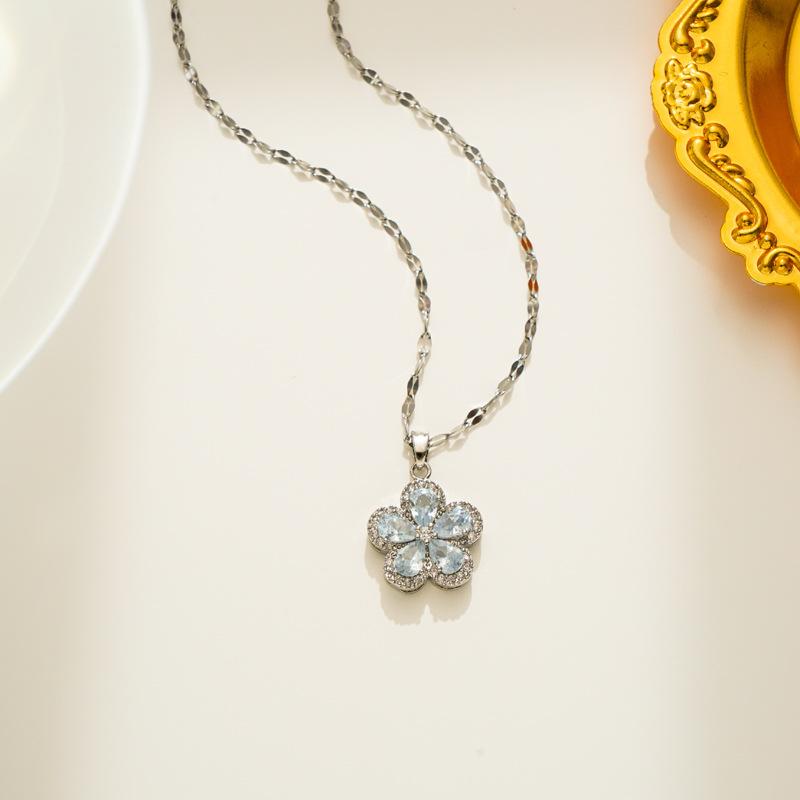 Collar para Mujer Moda Celebridad de Internet Lujo Accesible Flor de Circonita Diseño Nicho Versátil Simple Cadena Clavícula Acero Titanio Moda