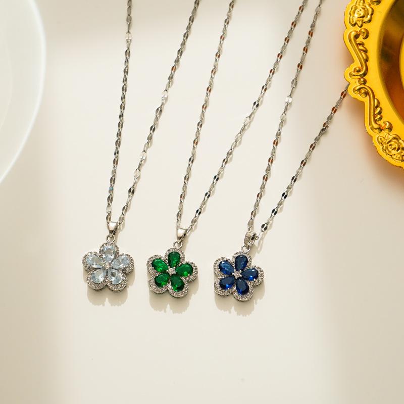 574 White zircon flower Silver, 574 blue zircon flower Silver, 574 green zircon flower Silver