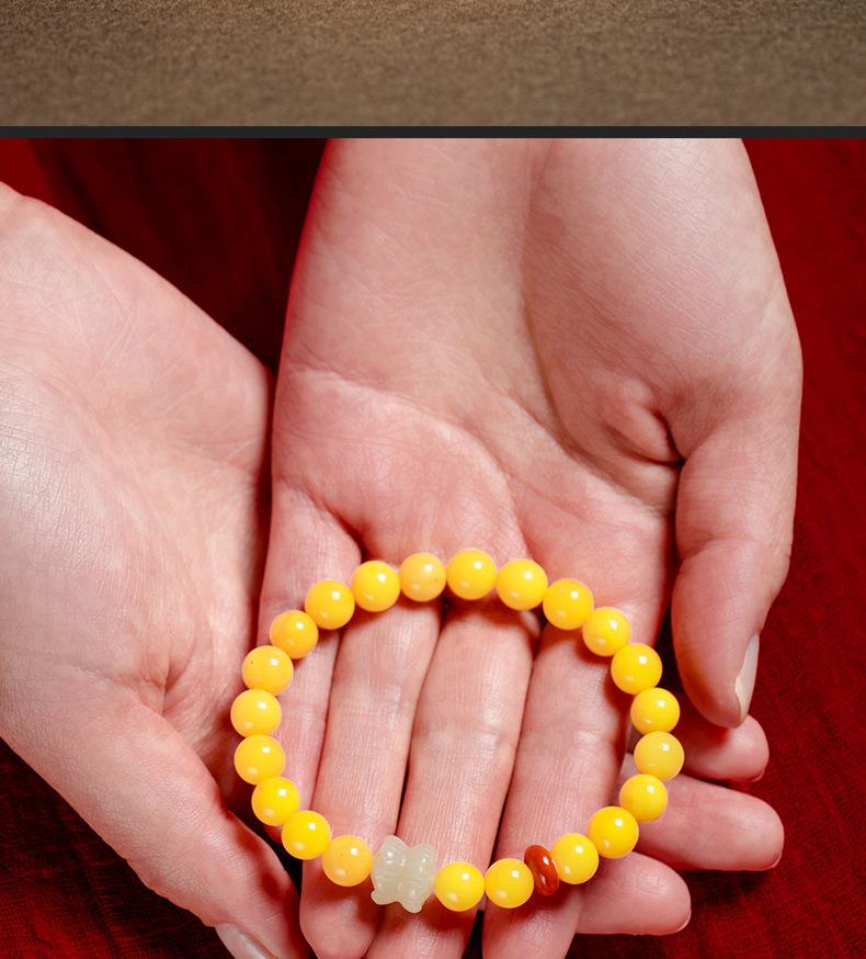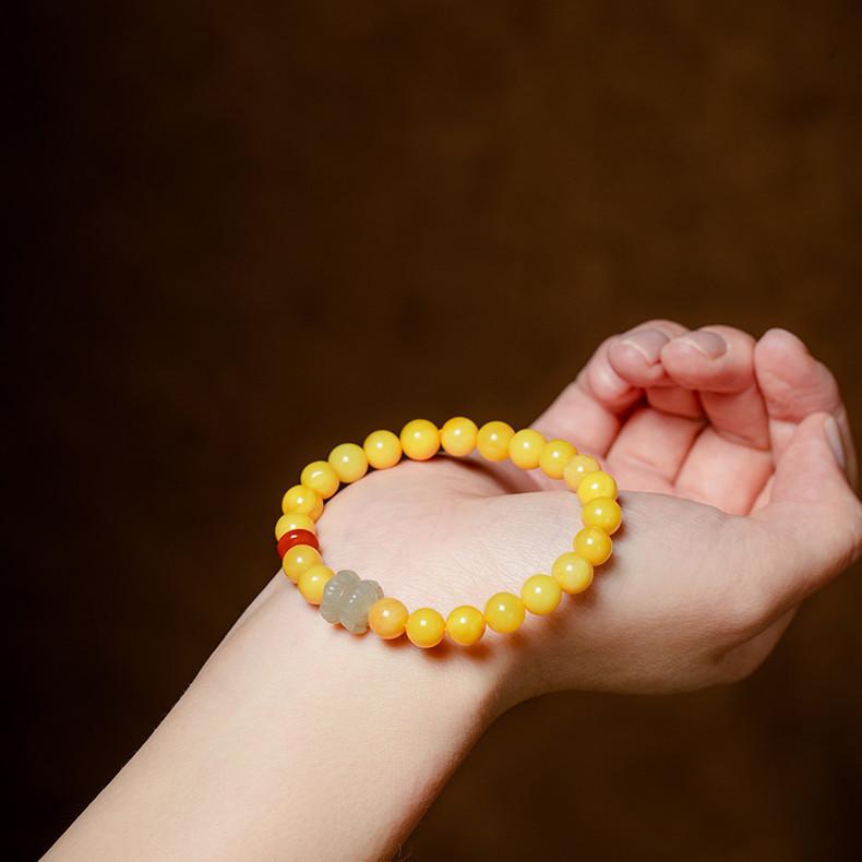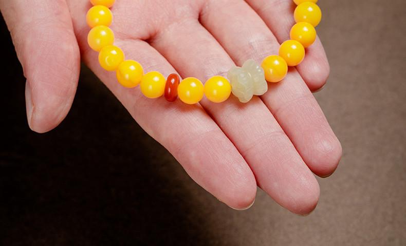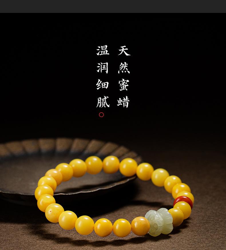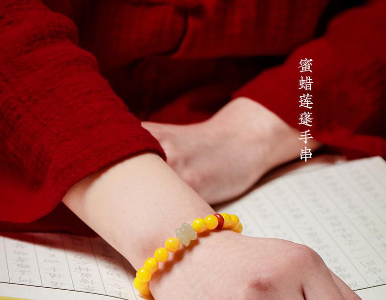 Pulsera de cera de abejas amarilla con aceite de pollo, anillo único de 8 mm con cuentas de loto de jade hetiano, pulsera DIY con cuentas para mujer, atmósfera sencilla