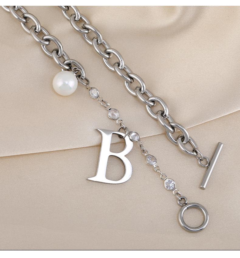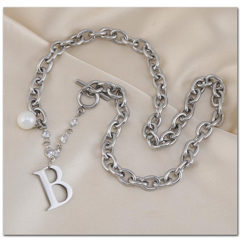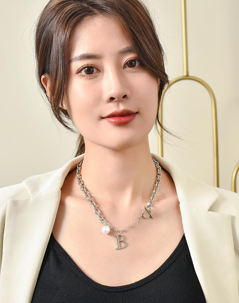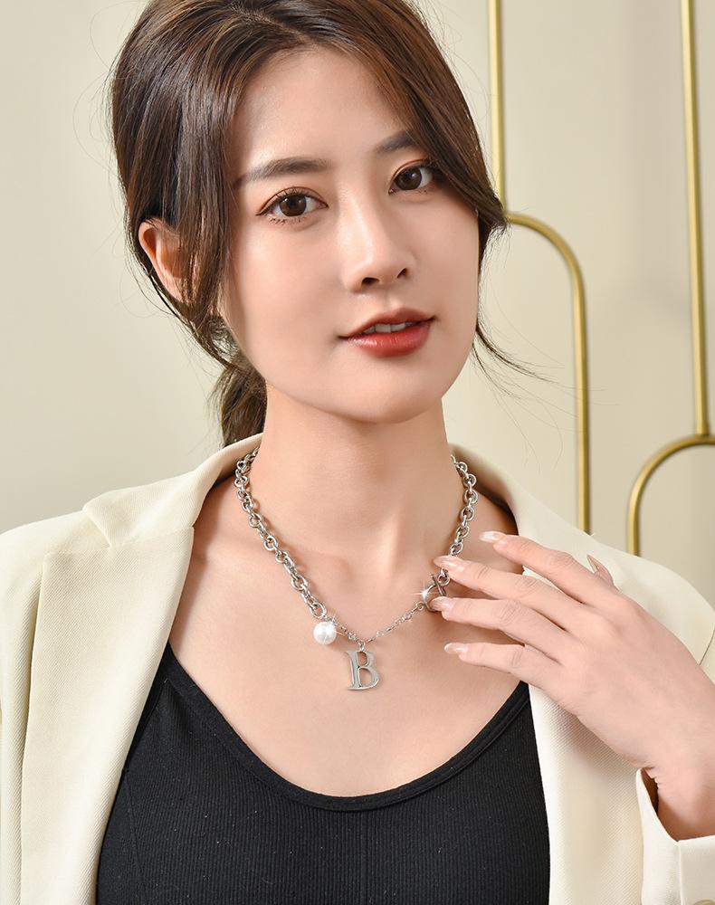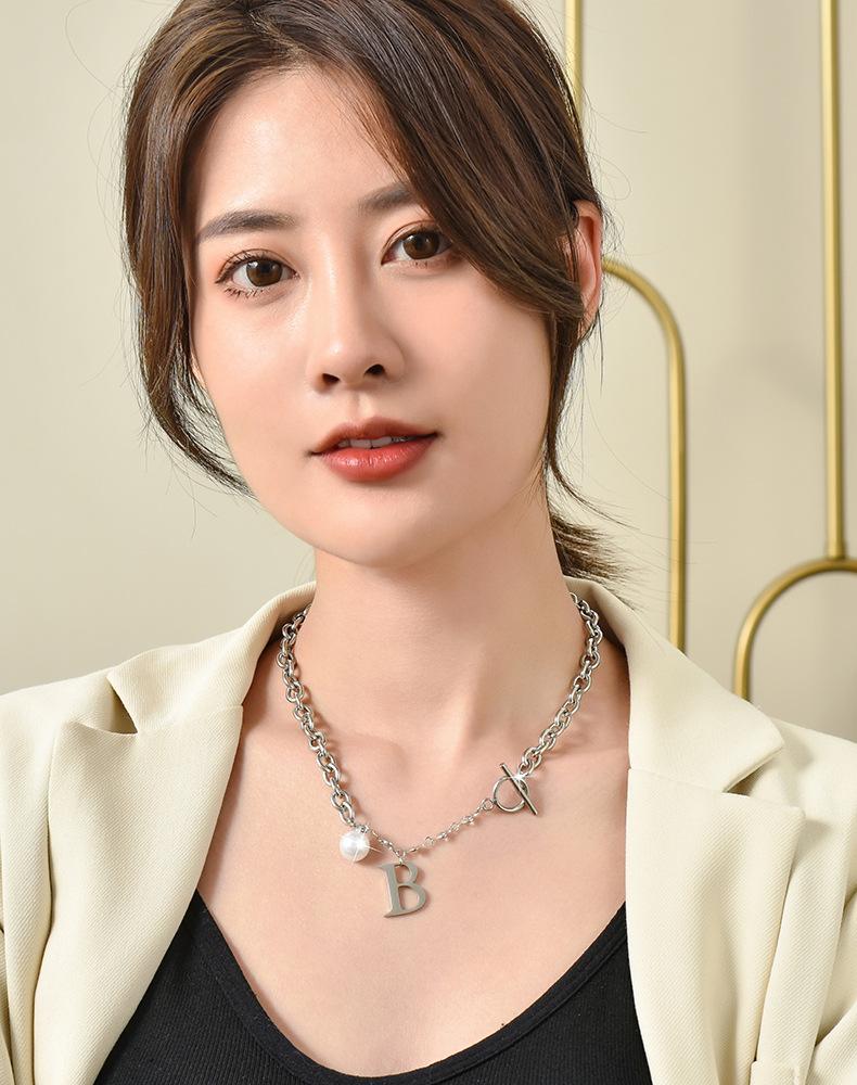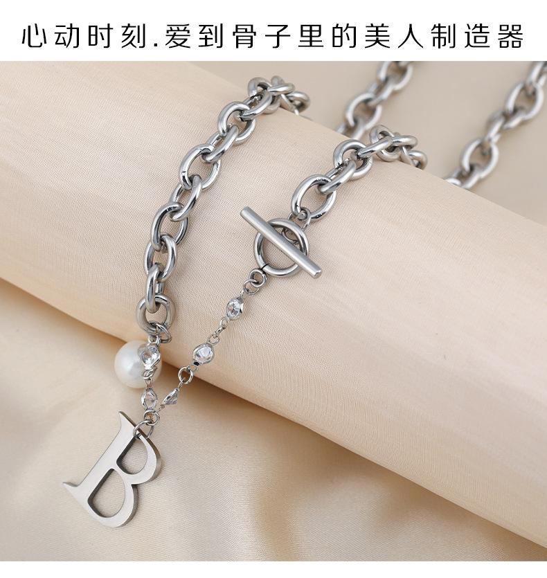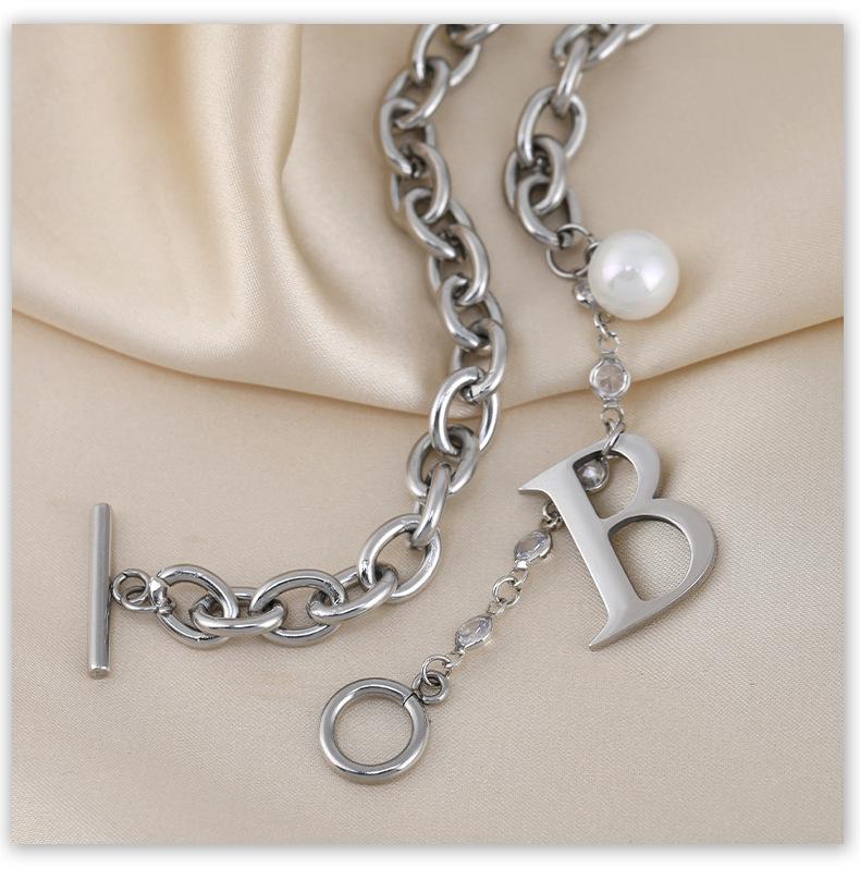 Versión coreana de moda simple para mujer, collar de acero de titanio con letra B de perla, nuevo viento ins, cadena con cierre de hebilla TO, venta al por mayor transfronteriza