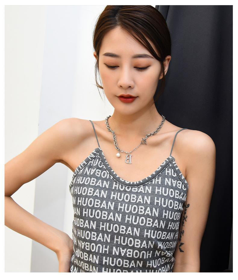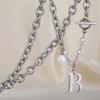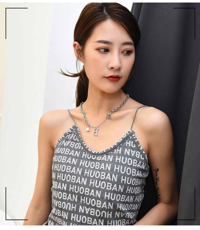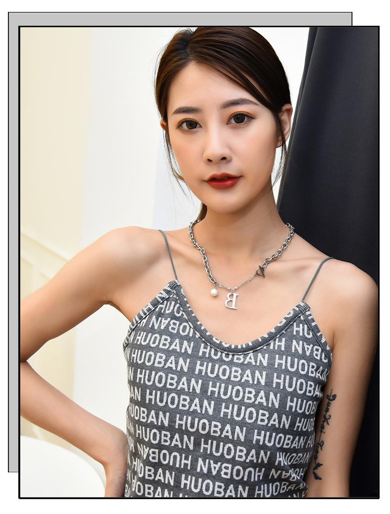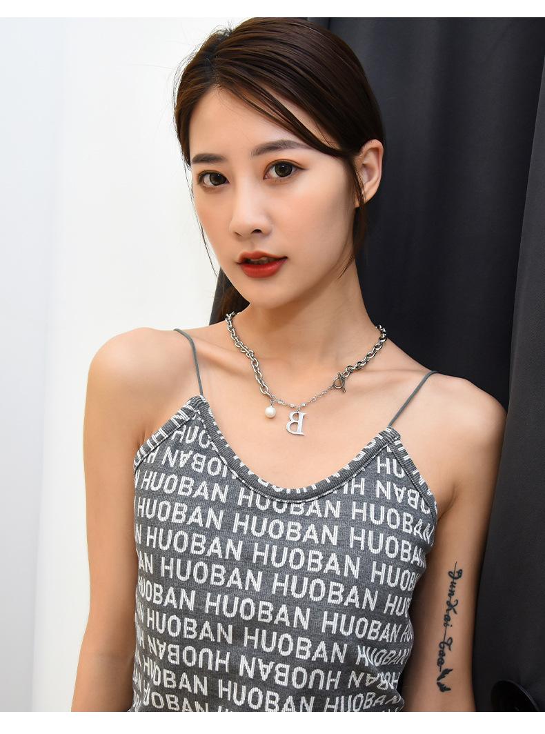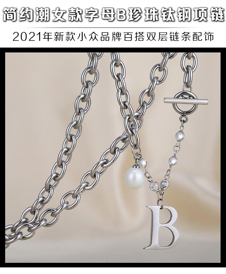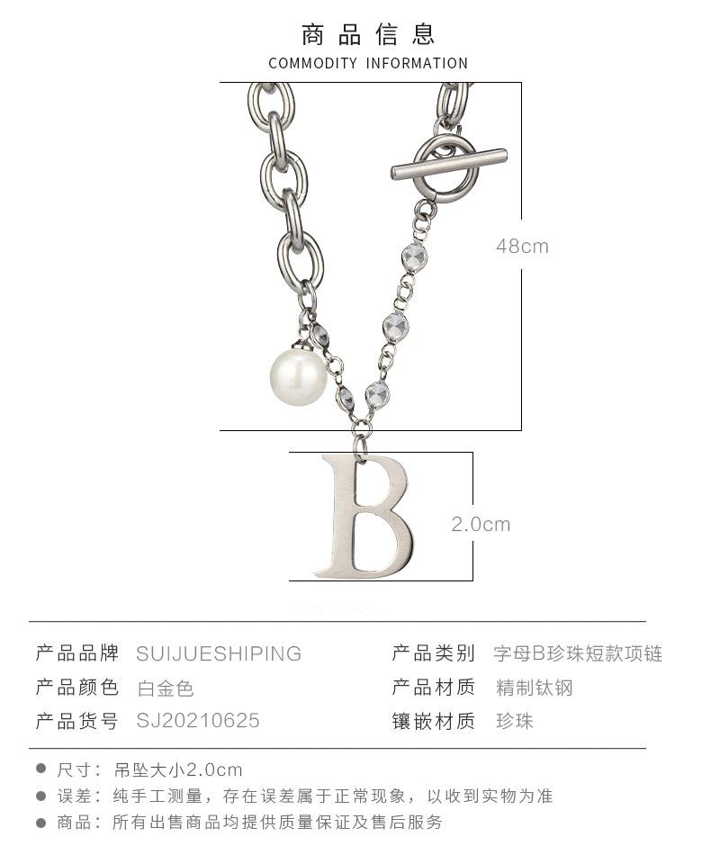 Versión coreana de moda simple para mujer, collar de acero de titanio con letra B de perla, nuevo viento ins, cadena con cierre de hebilla TO, venta al por mayor transfronteriza