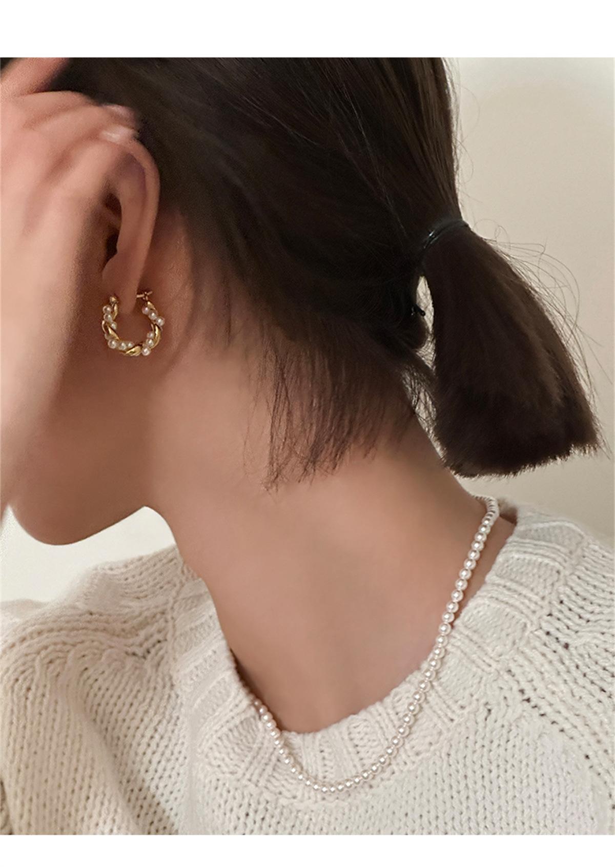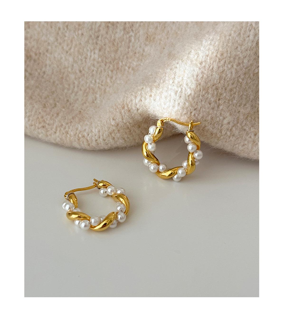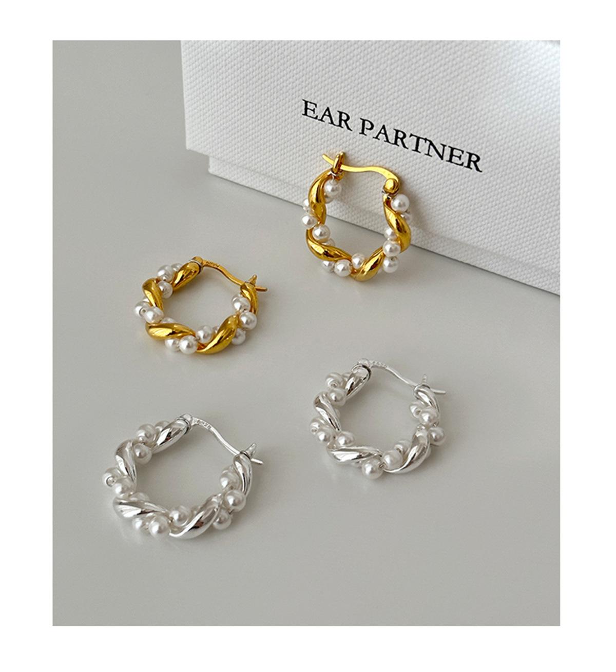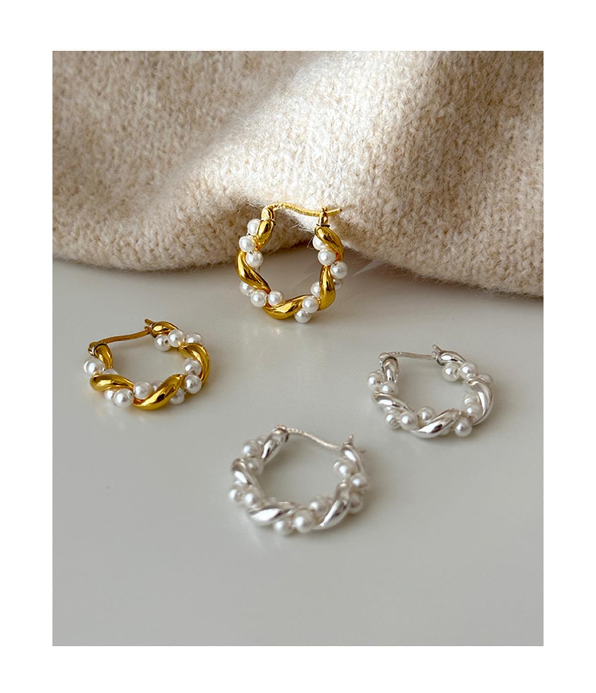 [Silver] a pair of pearl twisted earrings, [Gold] a pair of pearl twisted earrings