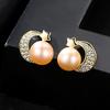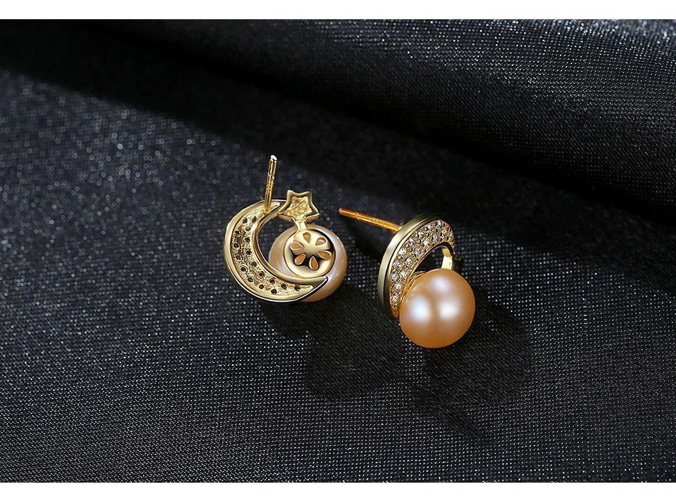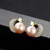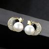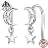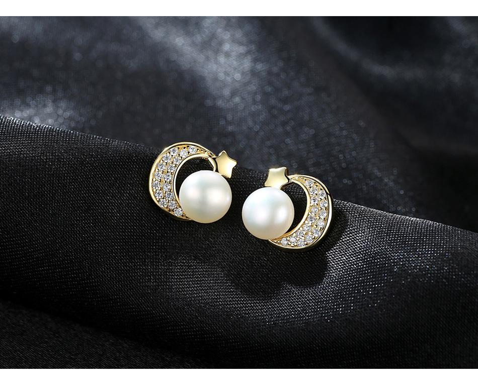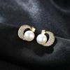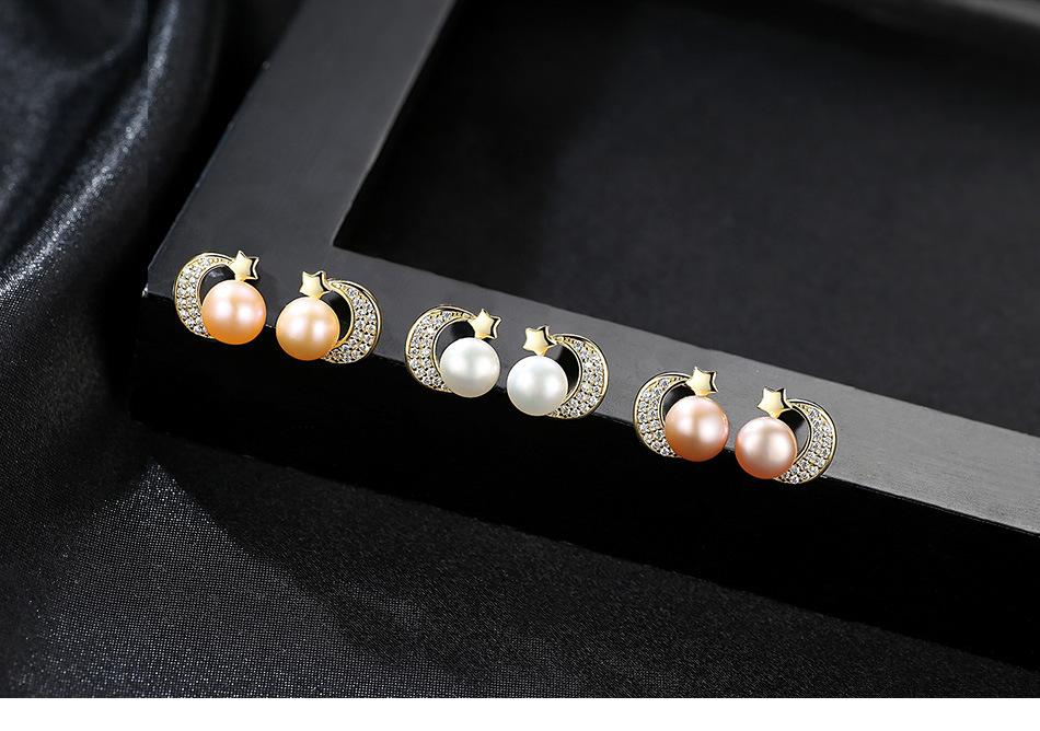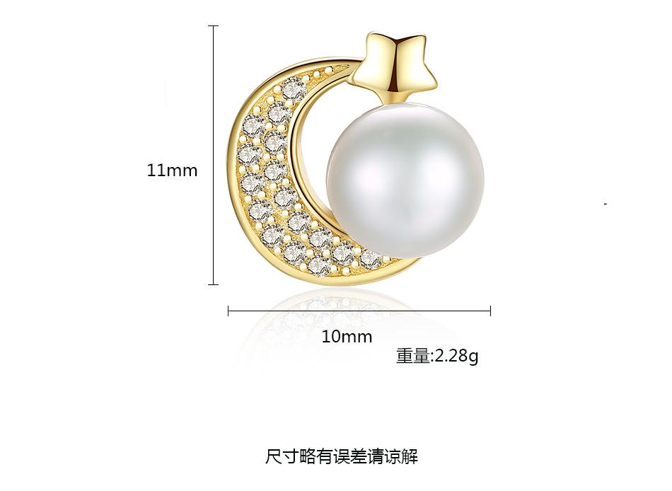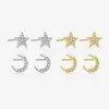 PAG & MAG Aretes de Luna Perla Plata S925 Estrella Luna Aretes Micro Set Circonita 3A Aretes de Viajera para Dama