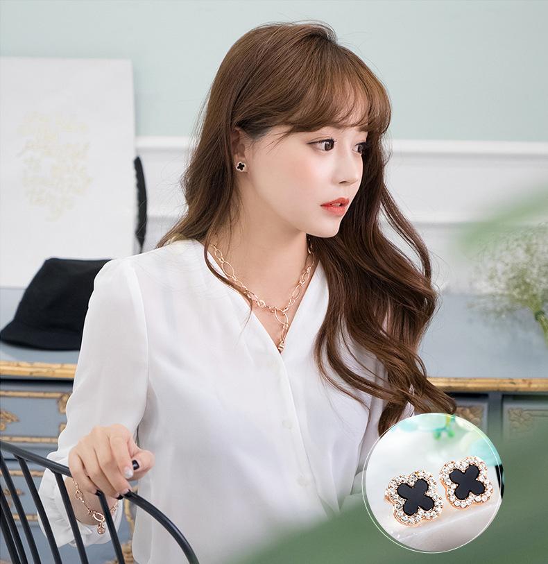 | Collar coreano de moda transfronterizo de trébol de cuatro hojas para mujer collar de oro rosa cadena para clavícula colgante venta directa de fábrica |