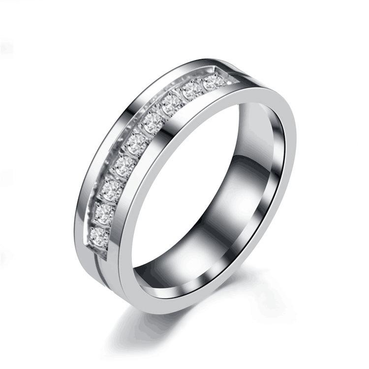 Popular Anillo de Diamantes de Acero Inoxidable Transfronterizo Europeo y Americano Diseño de Moda para Mujer Anillo de Pareja Anillo de Diamantes Joyería de Moda para Hombre