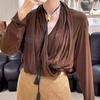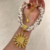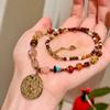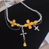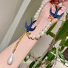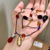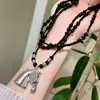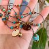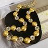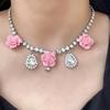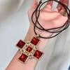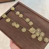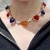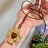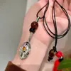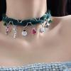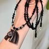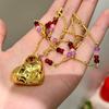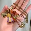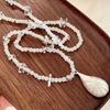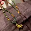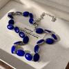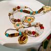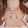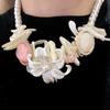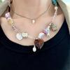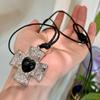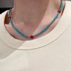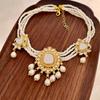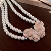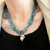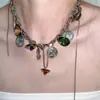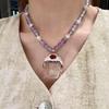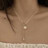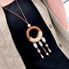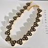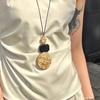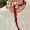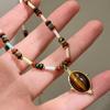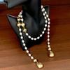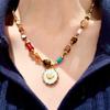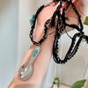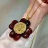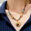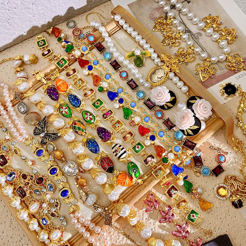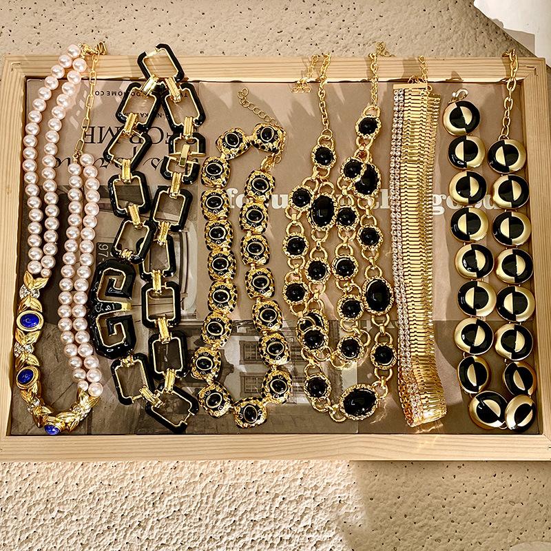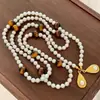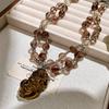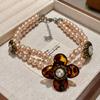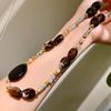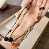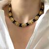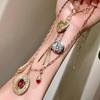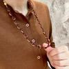 Cadena de suéter retro francesa de mediados de la antigüedad, pintura al óleo, collar de botón retro para niña, diseño de nicho femenino, exquisita cadena de clavícula de moda