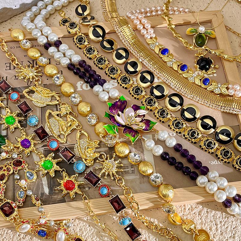 2302038 starfish pearl beaded necklace, 2305060 wide version metal flash diamond, 2305152c color square splici...