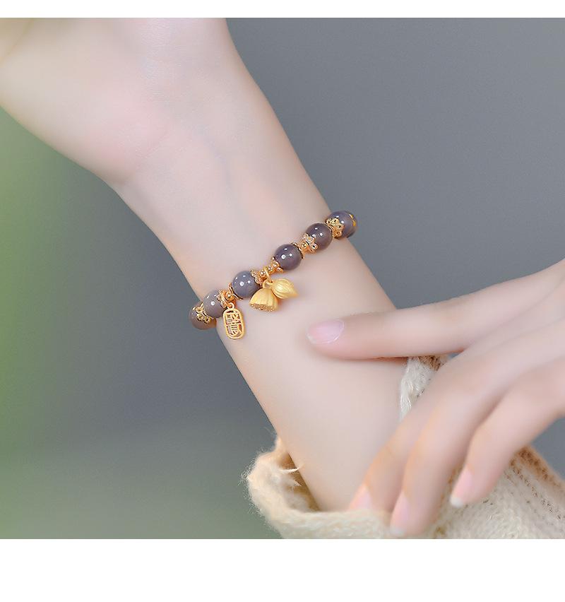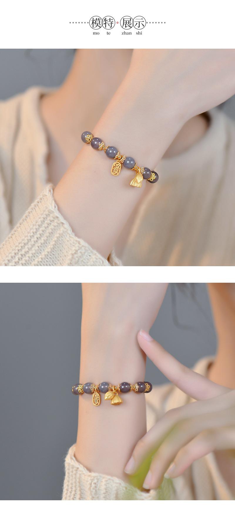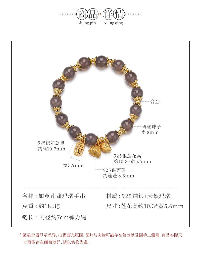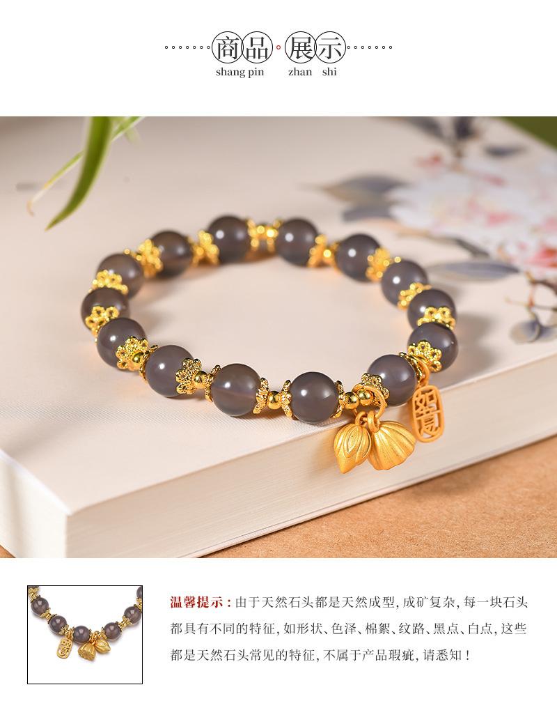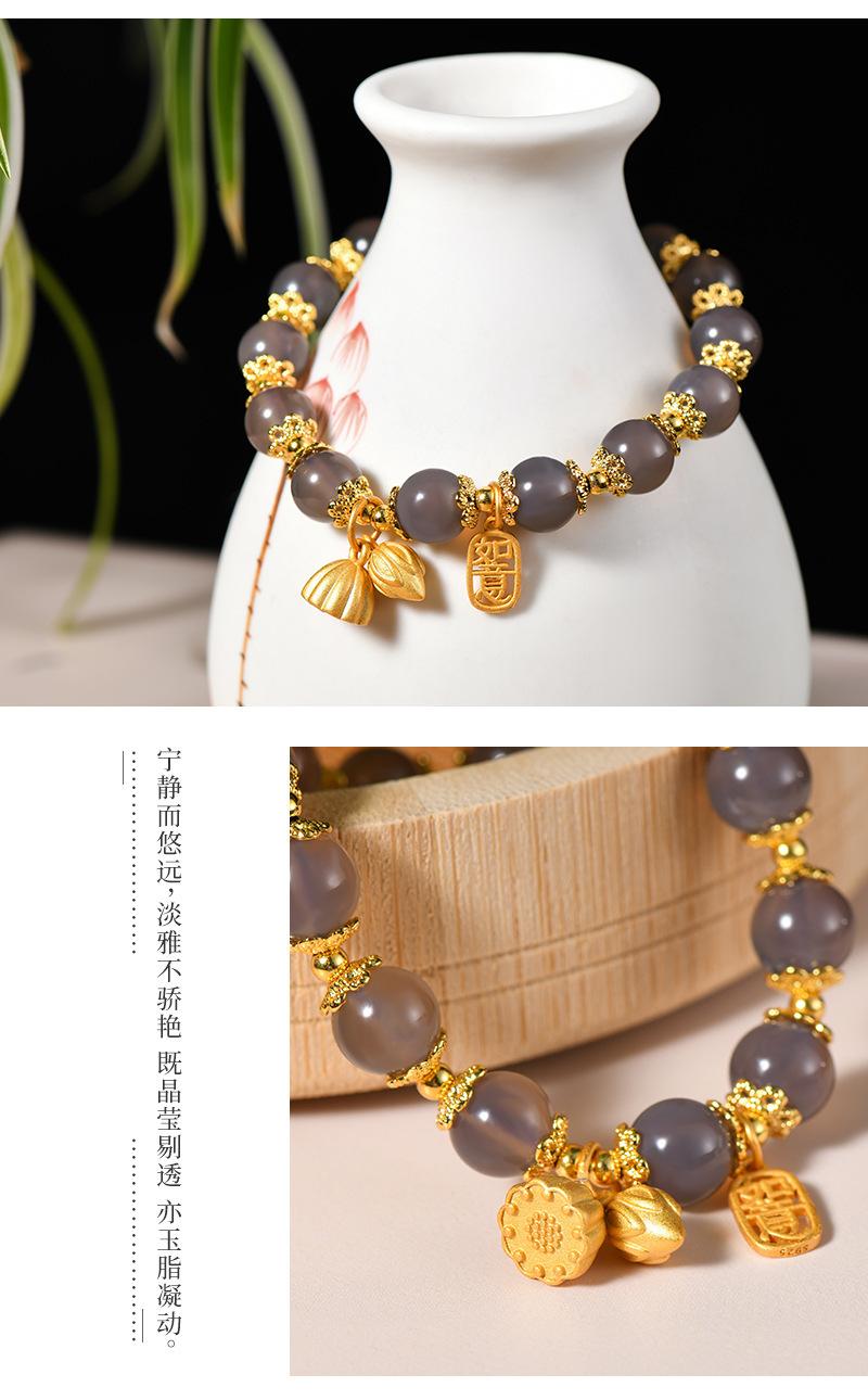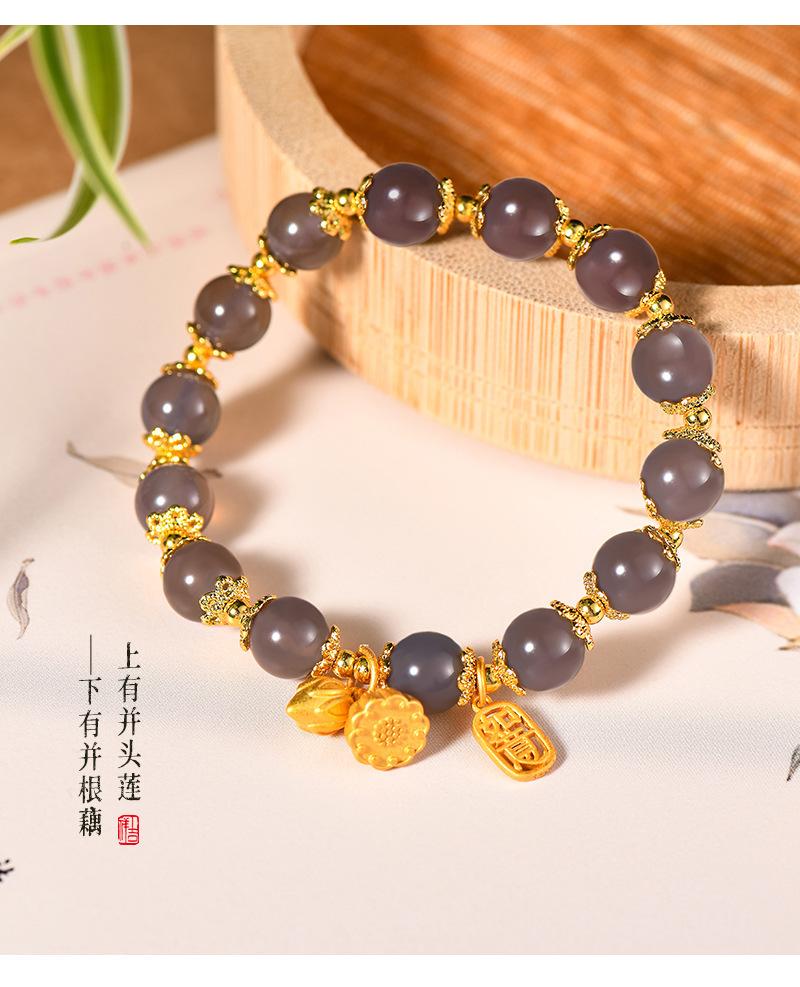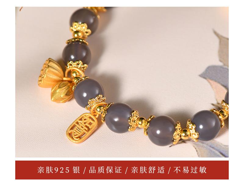 Pulsera de loto Ruyi de Tichiya, estilo chino, elegante, de alta calidad, con ágata gris natural, joyería de mano