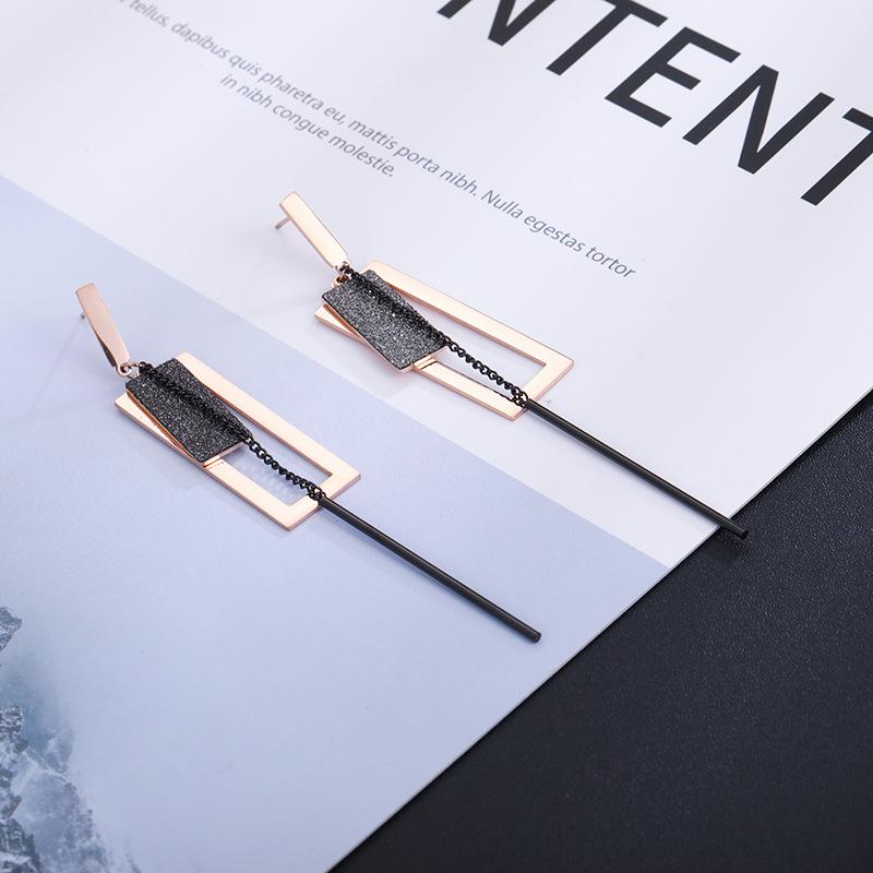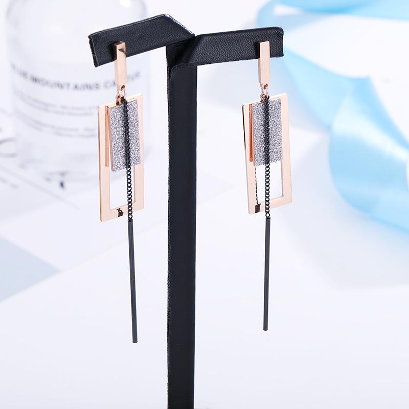 Compra Nuevos Aretes de Acero de Titanio Rectangulares Escarchados con Borla Mayoreo Moda para Mujer Oro Rosa Aretes Populares Joyería al por mayor en Joom.pro