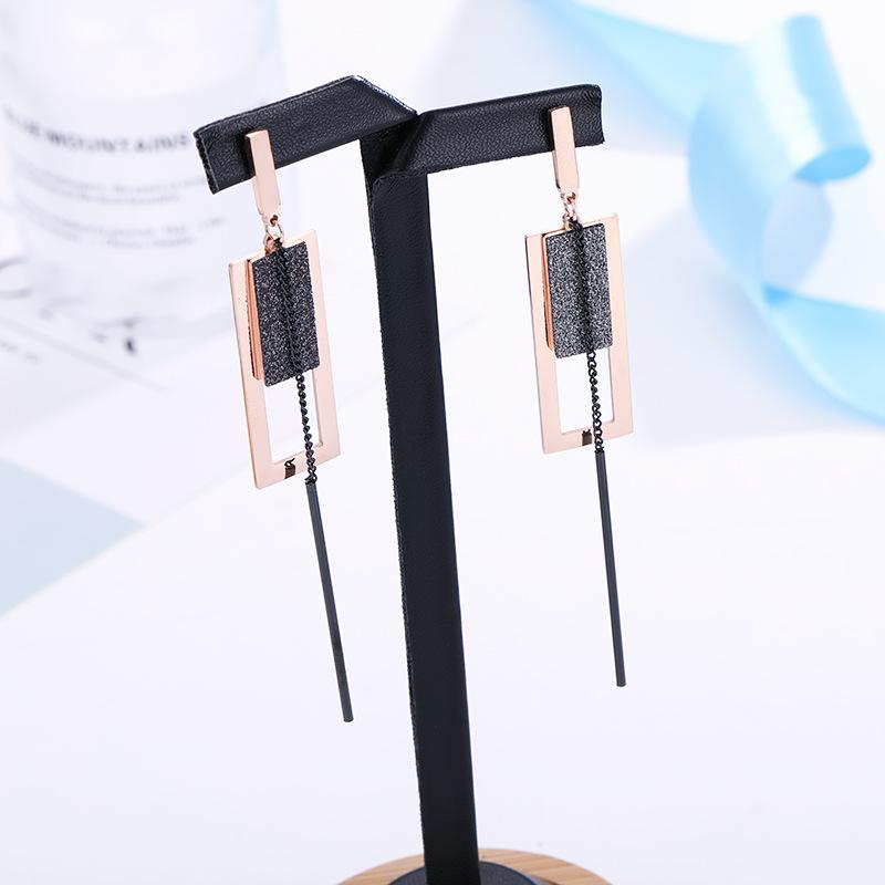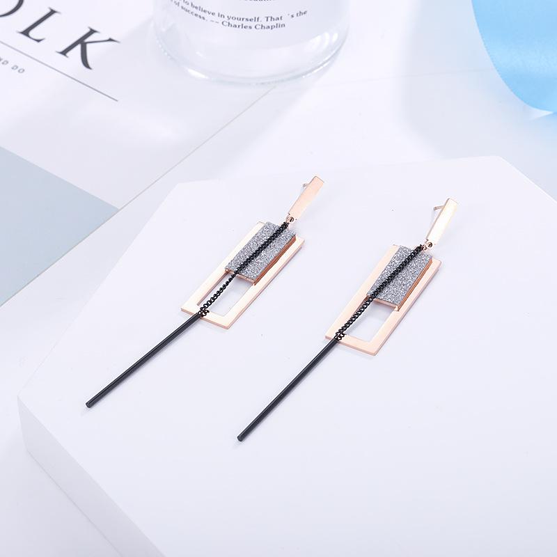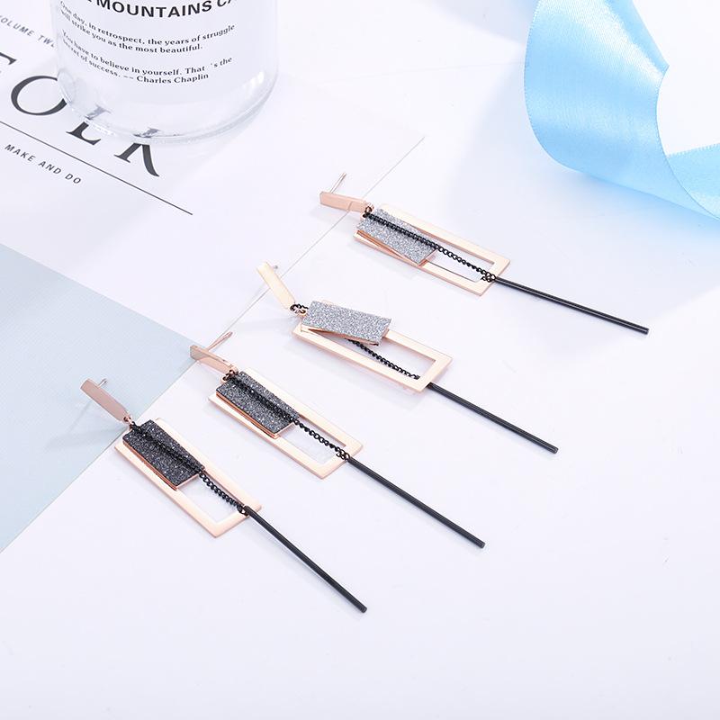 Nuevos Aretes de Acero de Titanio Rectangulares Escarchados con Borla Mayoreo Moda para Mujer Oro Rosa Aretes Populares Joyería