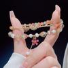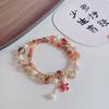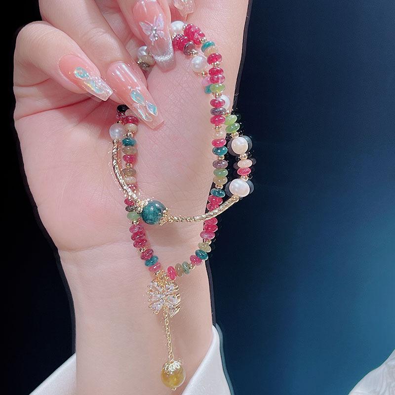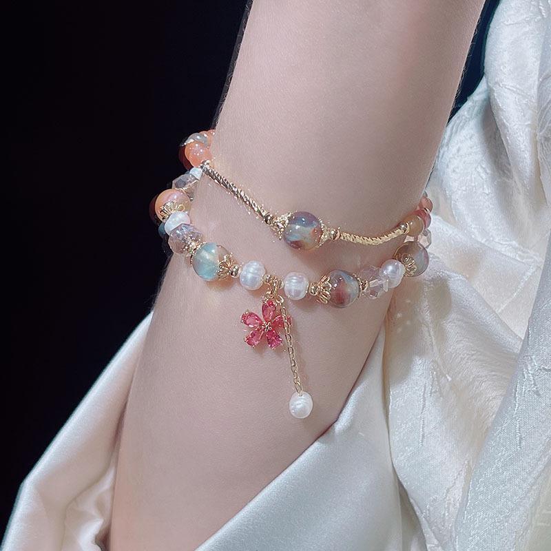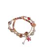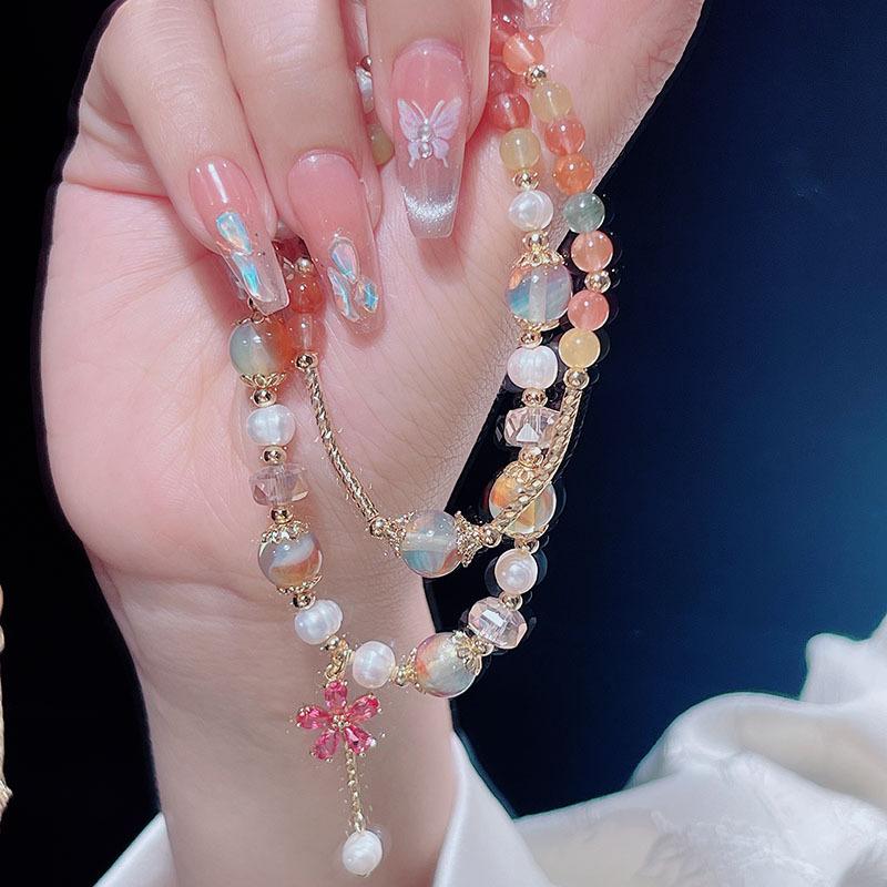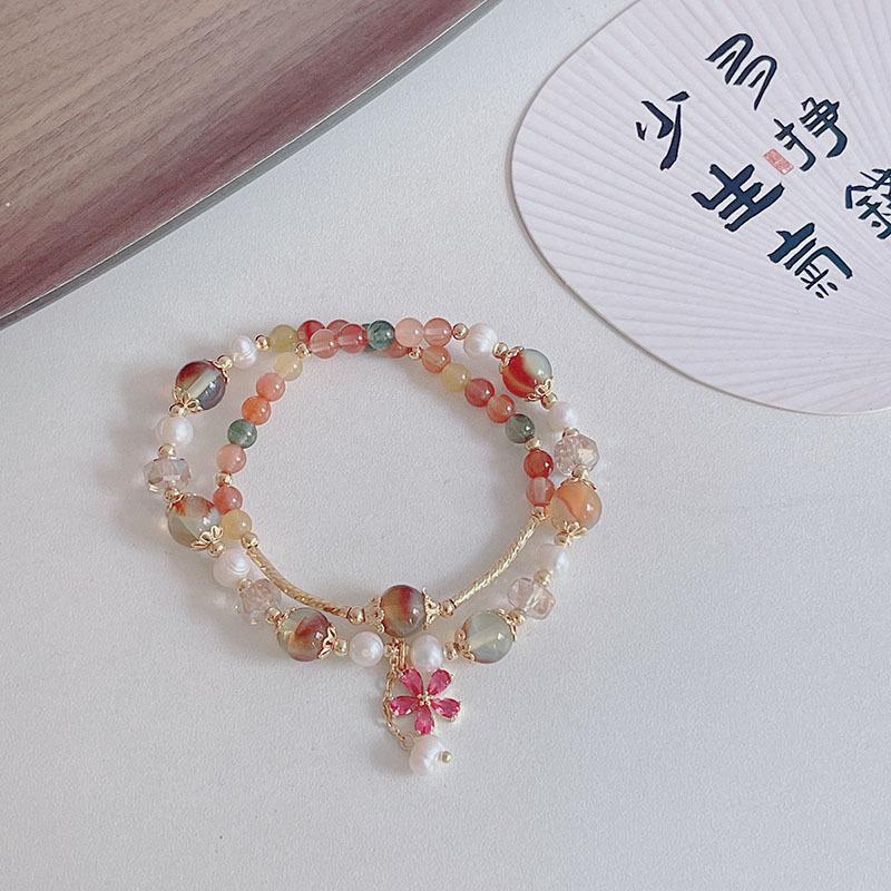 Pulsera de Ágata Jade Color Perla de Agua Dulce Natural Colgante Flor Roja Doble Capa Niña Diseño Original