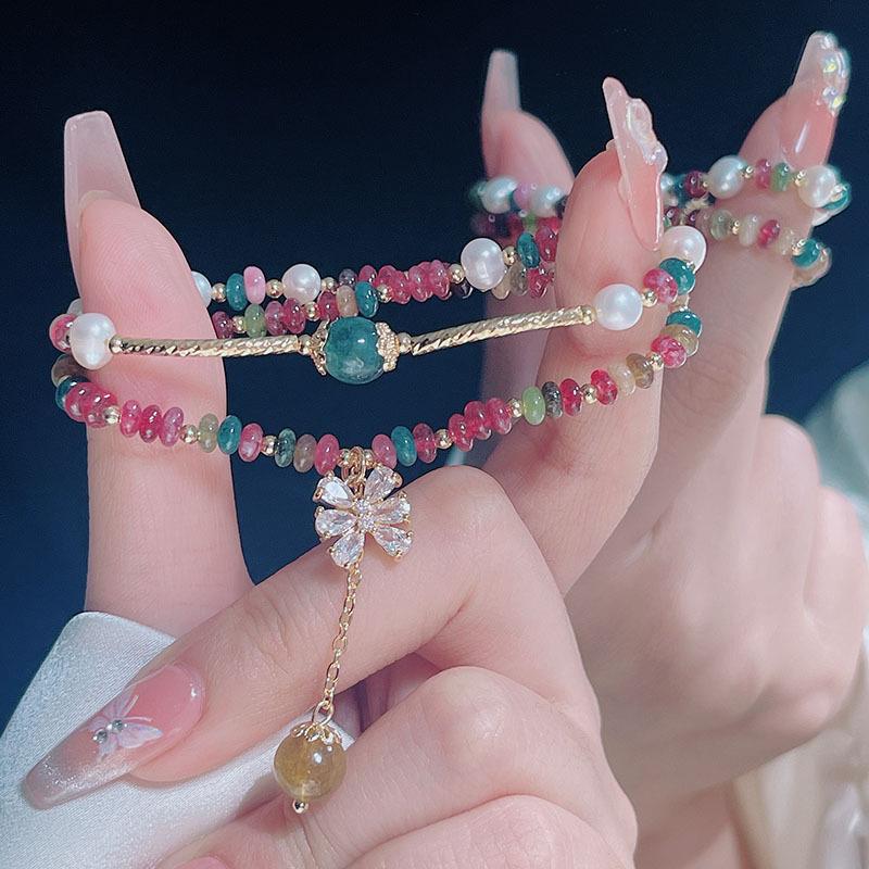 320-colored agate flower bracelet, 468-Pink Purple Butterfly Bracelet, 140-Colorful Flower Bracelet