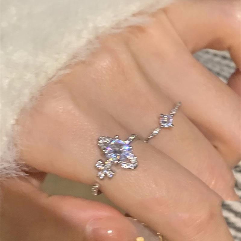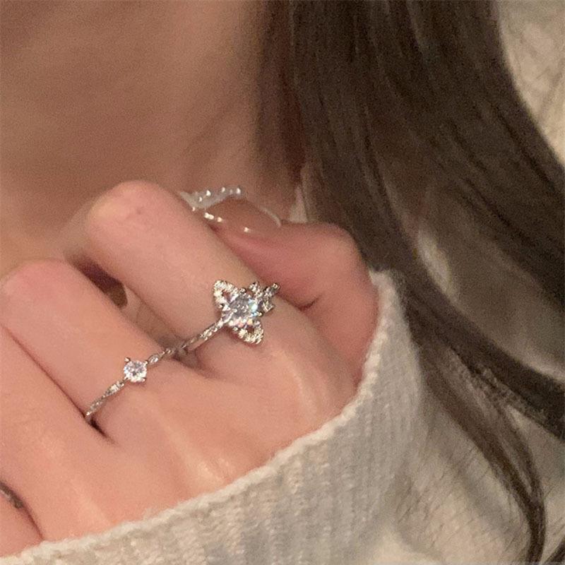 Nuevo anillo de diseño avanzado de nicho Temperamento súper hada femenino ins exquisito circonita anillo abierto ajustable