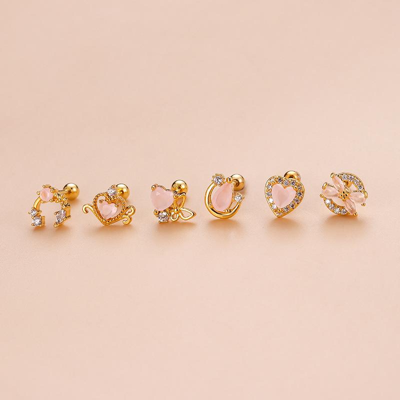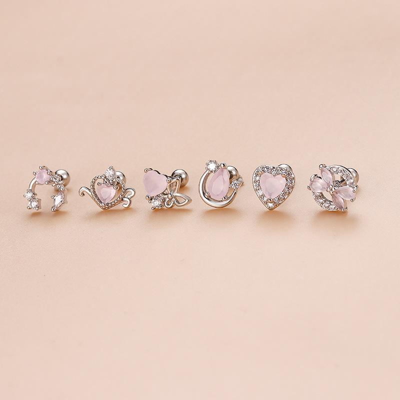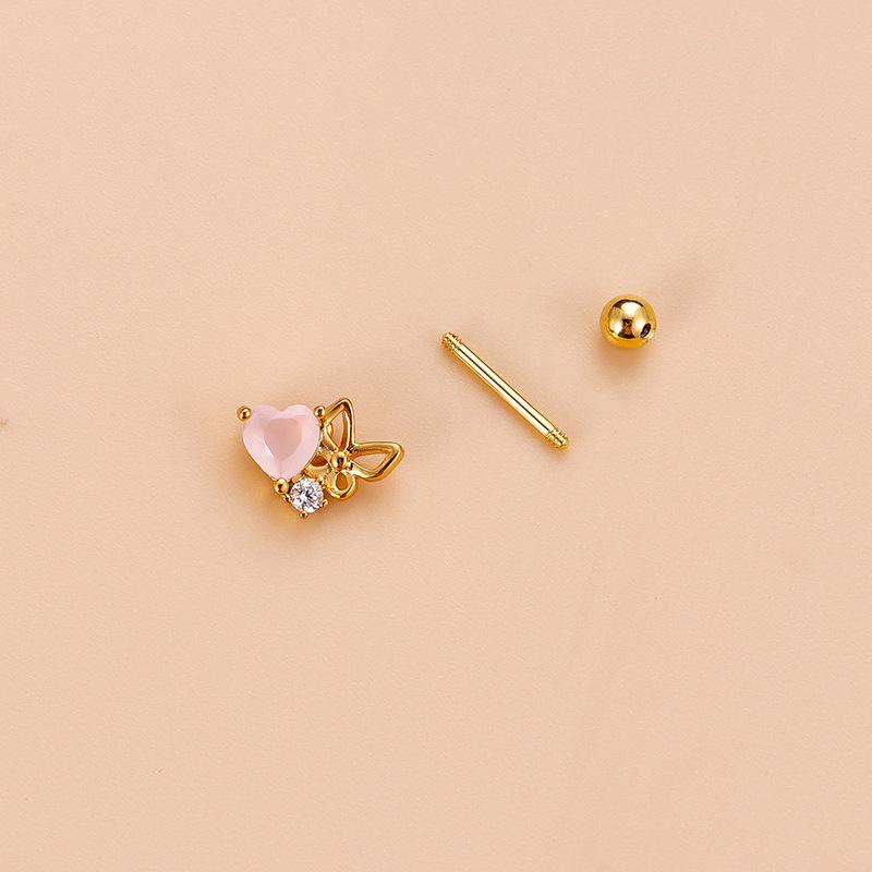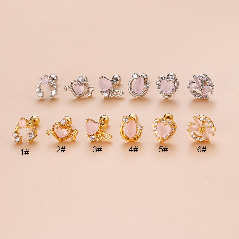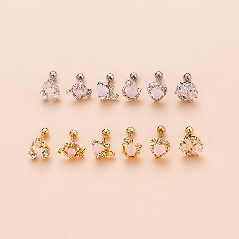 | nombre del producto | Pendientes de acero inoxidable con varilla fina y doble cabeza de tornillo, con forma de jade rosa dulce, circonitas cúbicas, piercing para el cartílago de la oreja, pendientes cocleares |