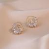 Aretes para Mujer Estilo Japonés y Coreano Moda Aretes Simples Elegantes Diseño Nicho de Celebridad de Internet Aretes de Circonita de Flor para Mujer