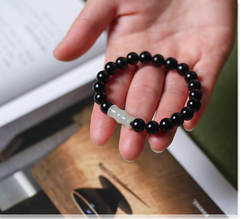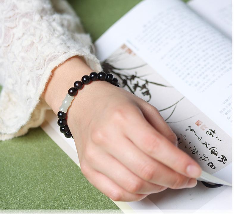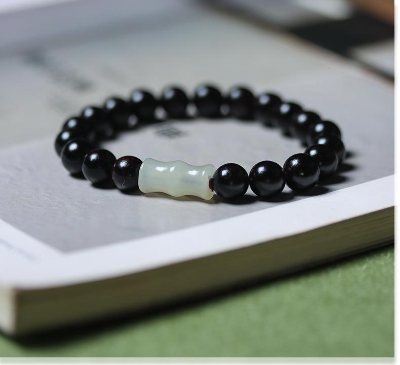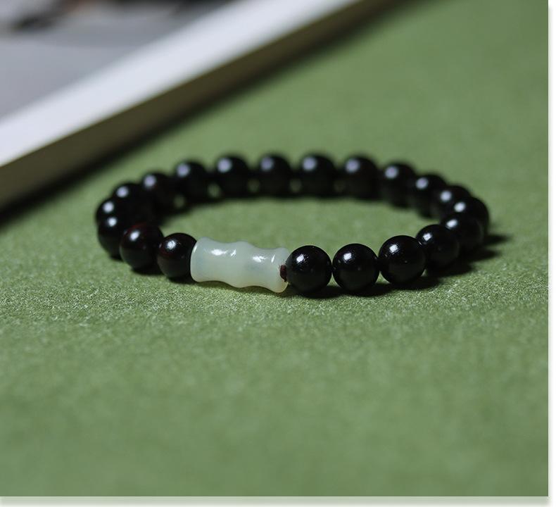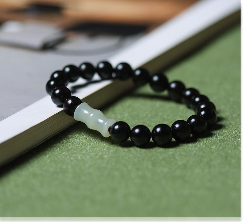Pulsera de ébano y sándalo morado con cadena de bambú de jade Hetian, hecha a mano, material antiguo, para hombres y mujeres, con rosario de Buda, fabricante Wenwan