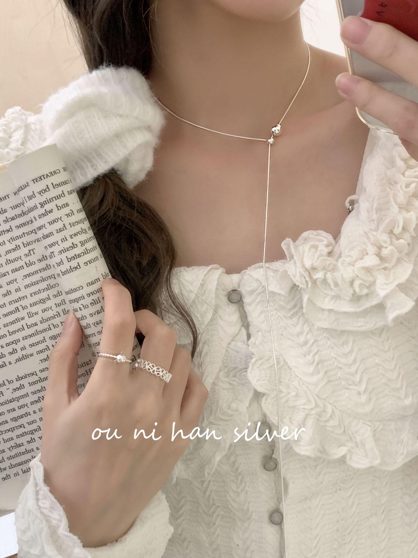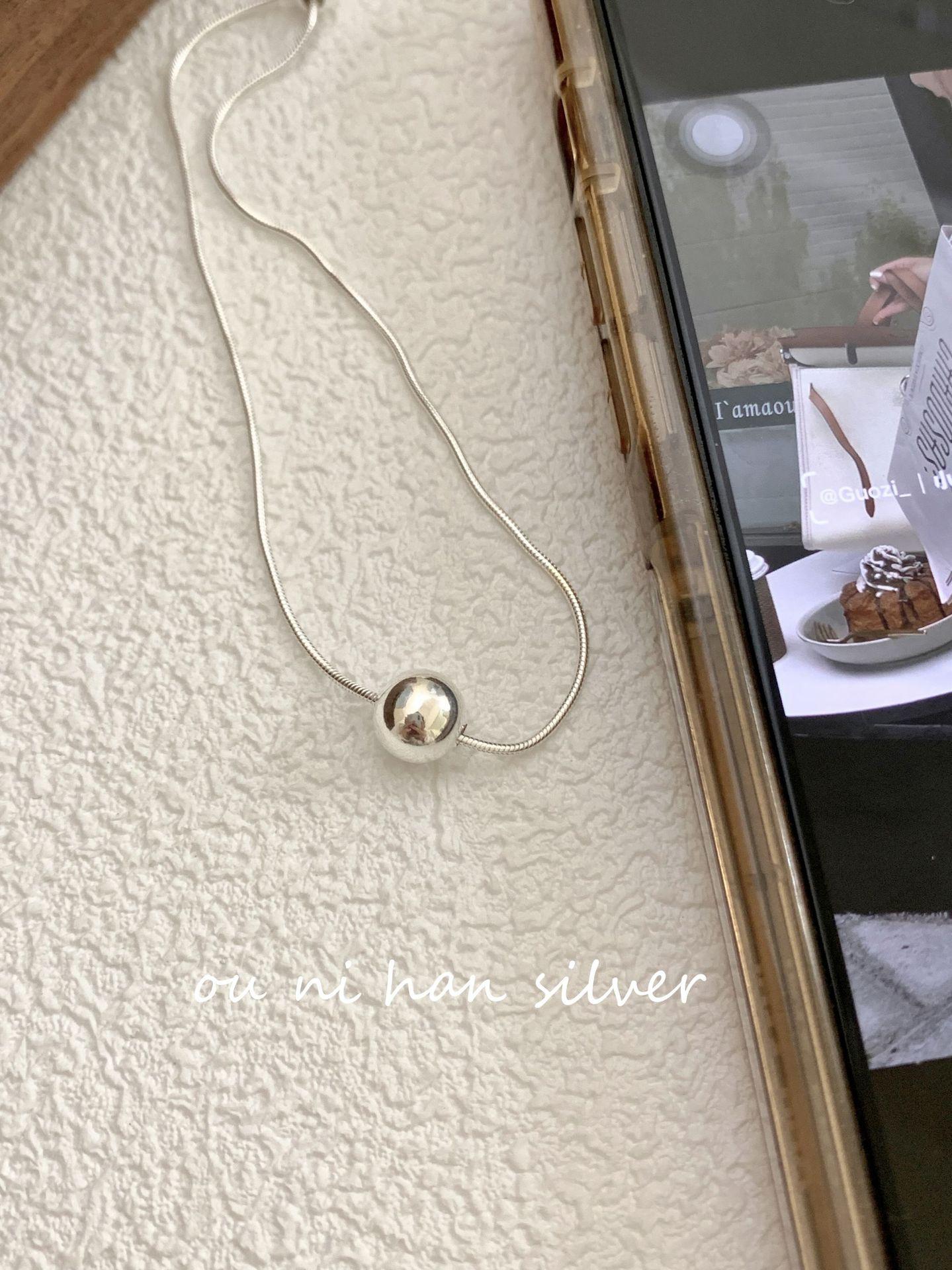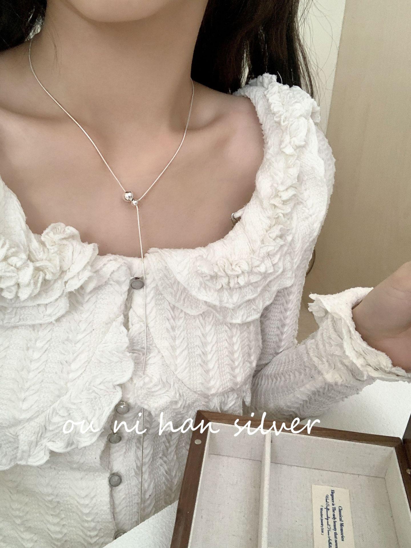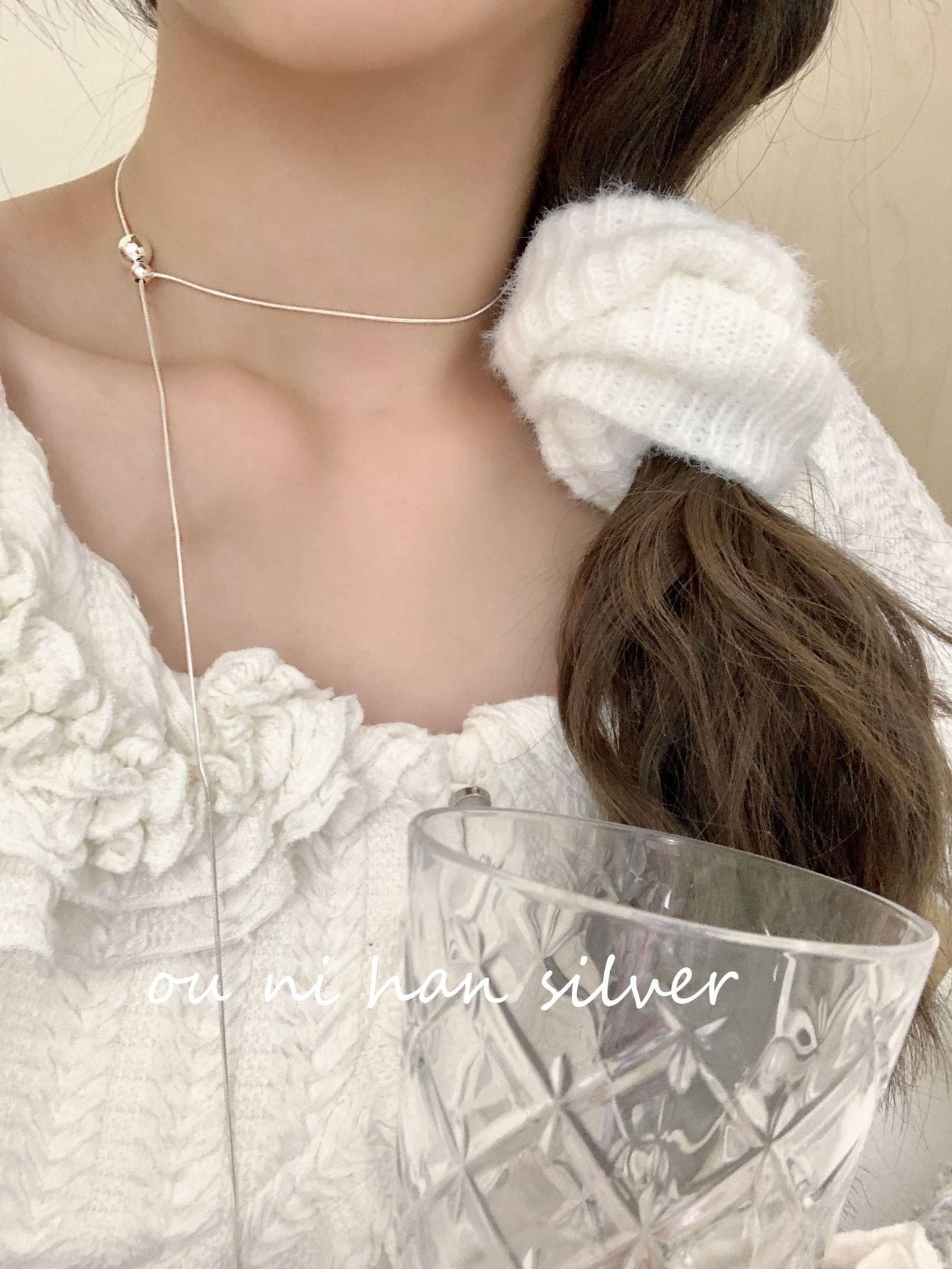 Collar de plata de ley S925 Oni con forma de bola de serpiente y hueso para mujer, estilo ins, diseño de nicho, ligero, lujoso, largo, para otoño e invierno, suéter de clavícula.