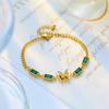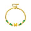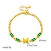 Pulsera de acero de titanio con cadena de mariposa cuadrada de diamante verde simple de moda de temperamento retro transfronterizo de Europa y Estados Unidos que combina con todo