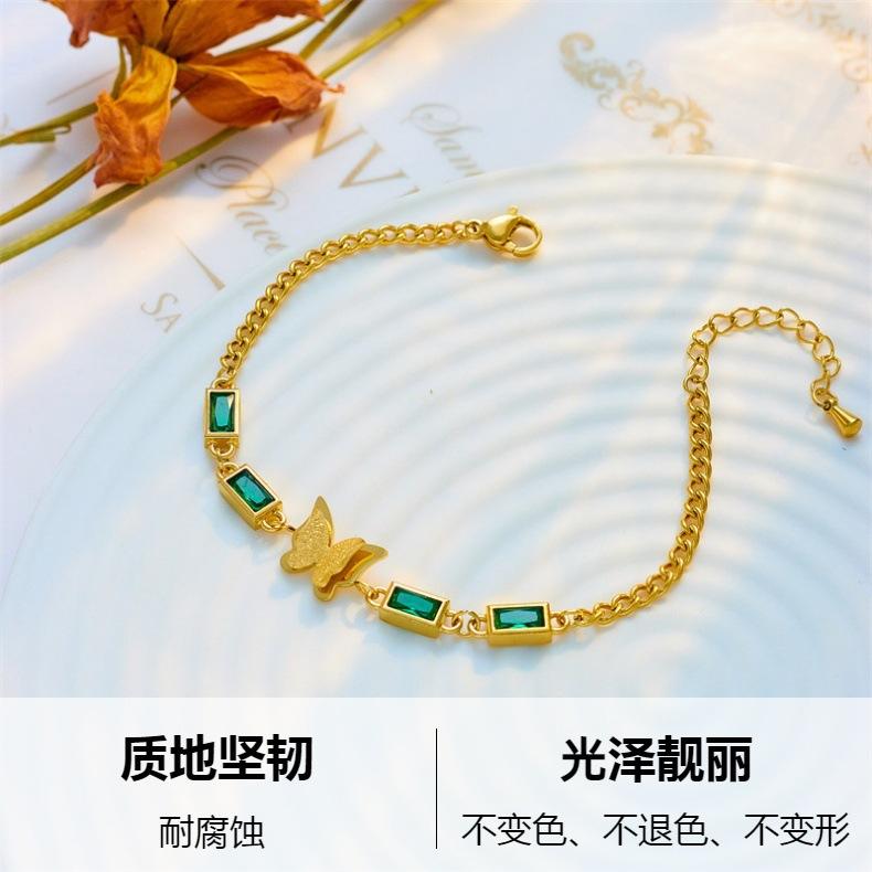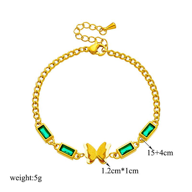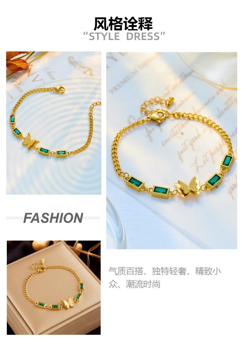 Compra Pulsera de acero de titanio con cadena de mariposa cuadrada de diamante verde simple de moda de temperamento retro transfronterizo de Europa y Estados Unidos que combina con todo al por mayor en Joom.pro