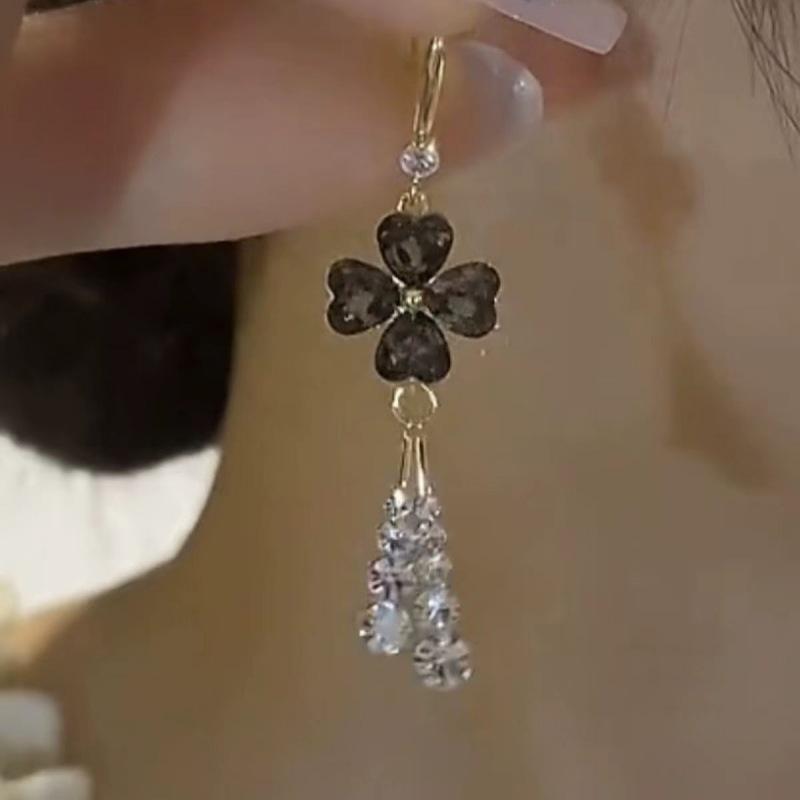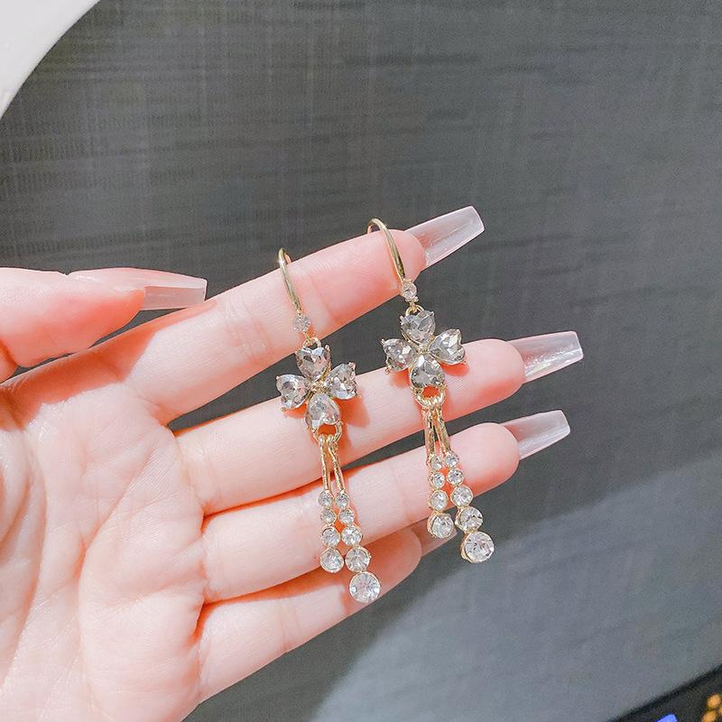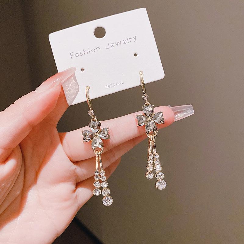 Pendientes de botón ligeros y lujosos con diseño de nicho, bonitos y modernos, con borlas de flores de cristal y gancho para la oreja, pendientes de celebridades de Internet que combinan con todo, de moda japonesa y coreana para mujer