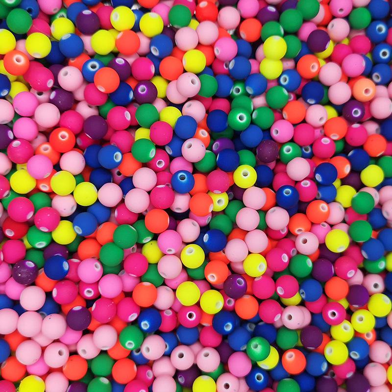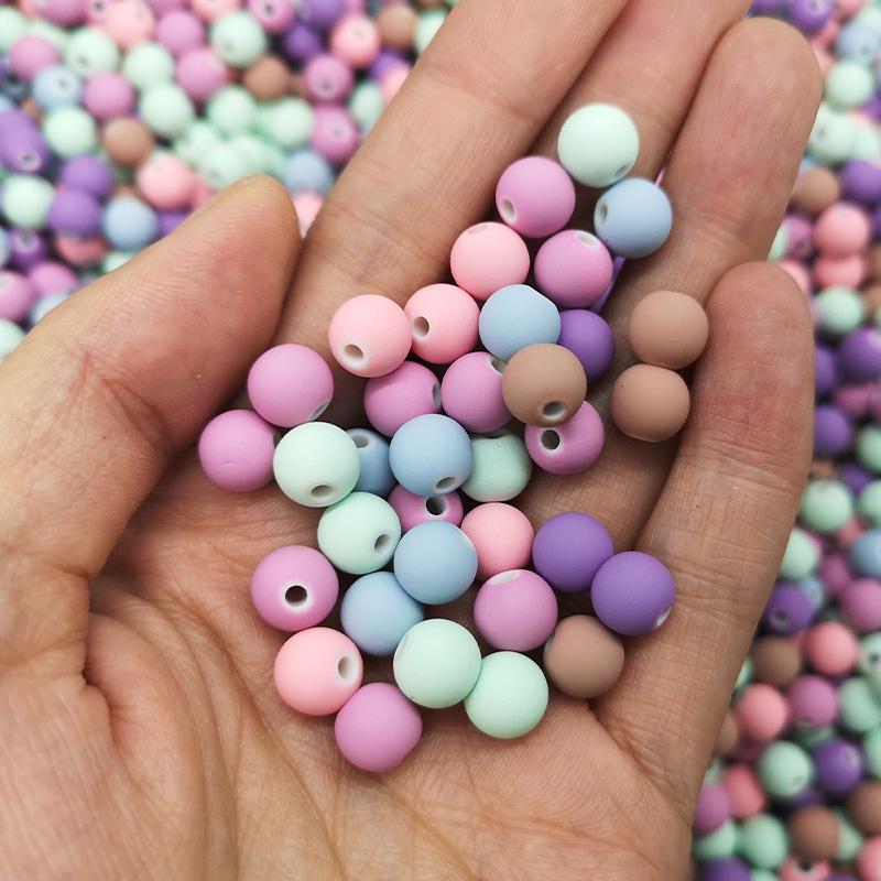 Cuentas de goma acrílicas esmeriladas de macarrón, pintura en aerosol de color, cuentas redondas de color, material para manualidades, accesorios de joyería