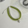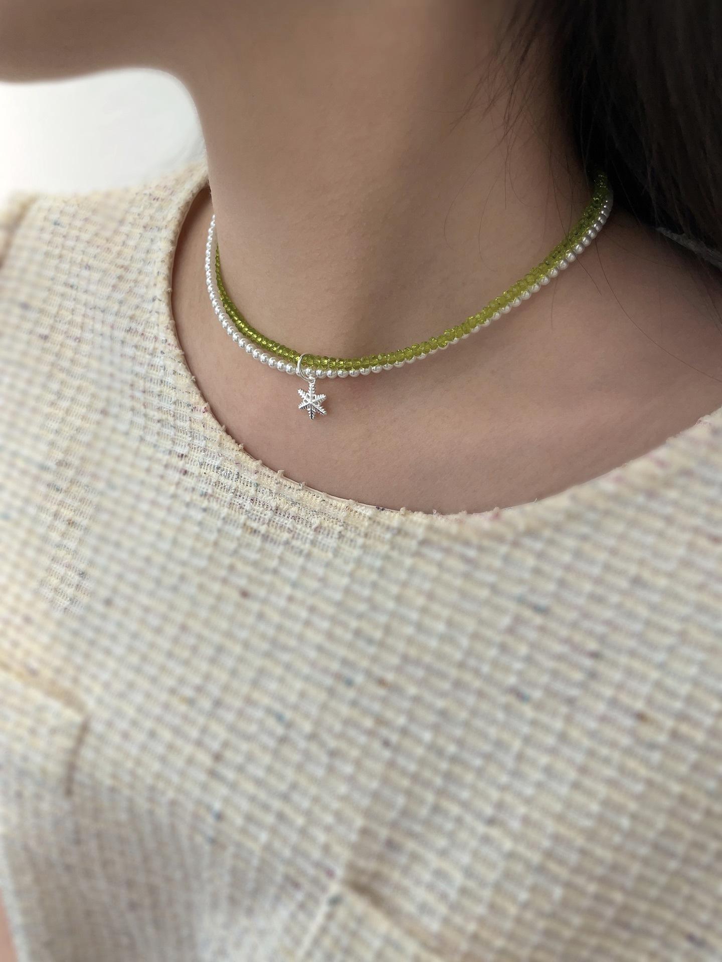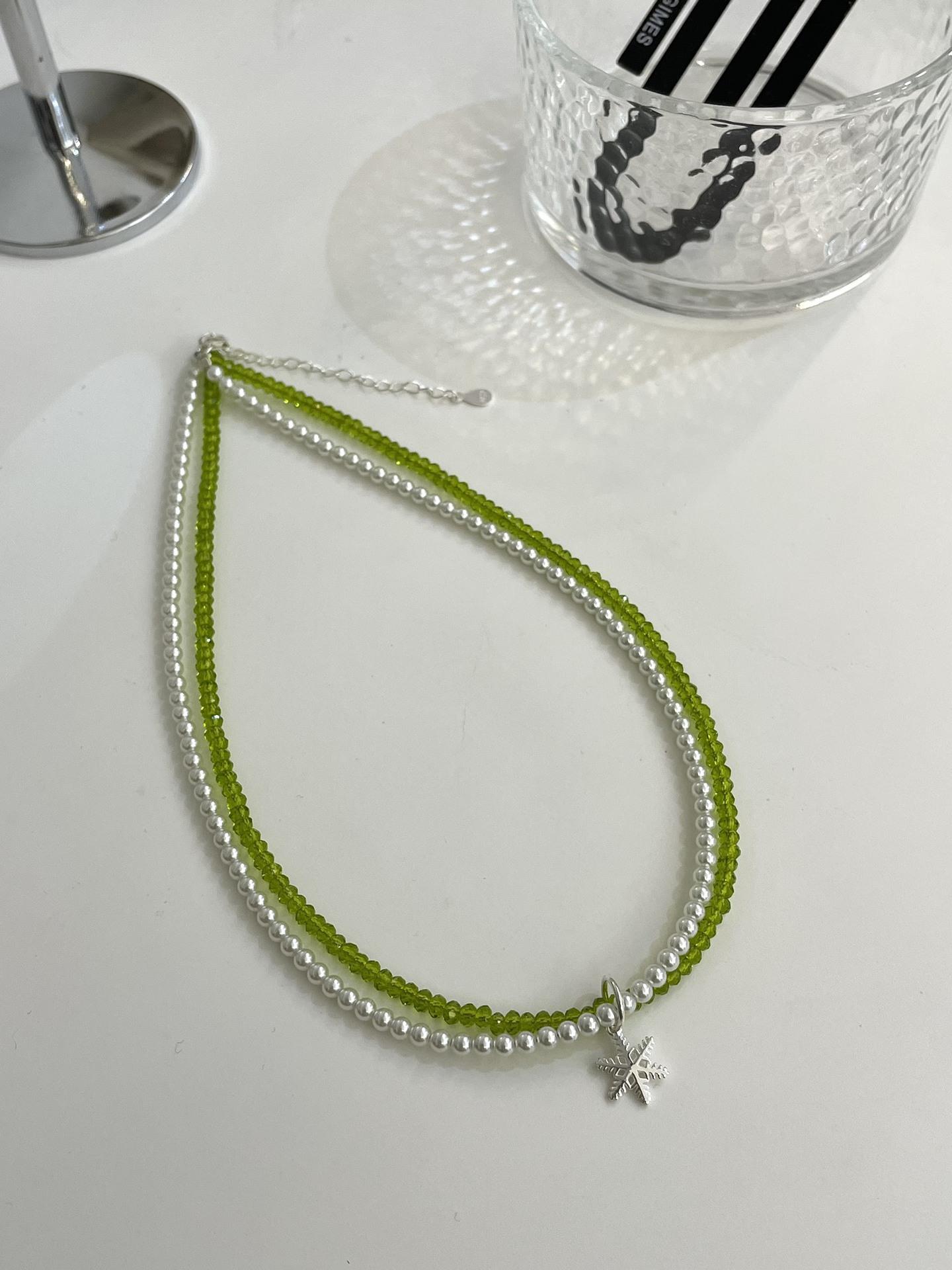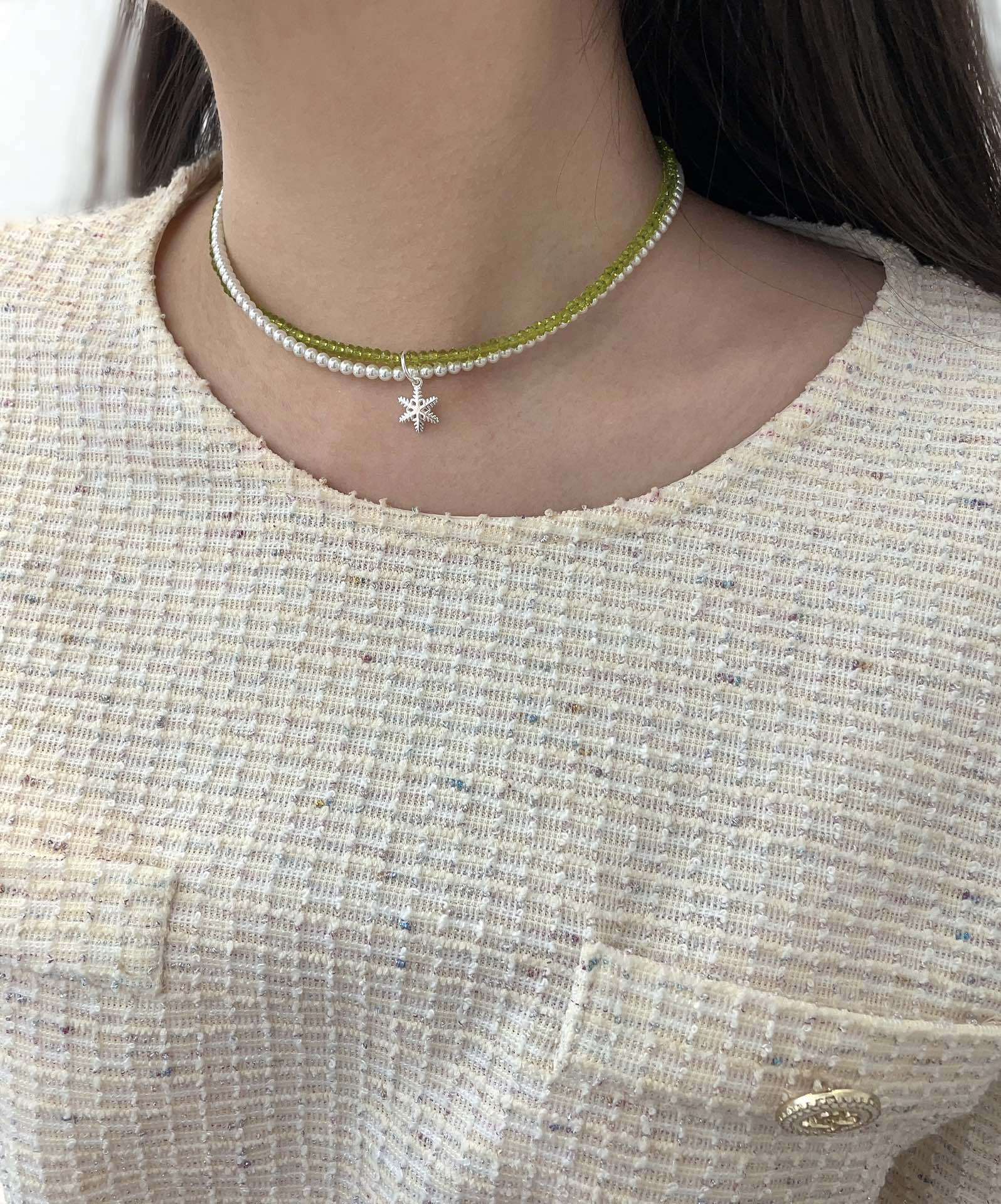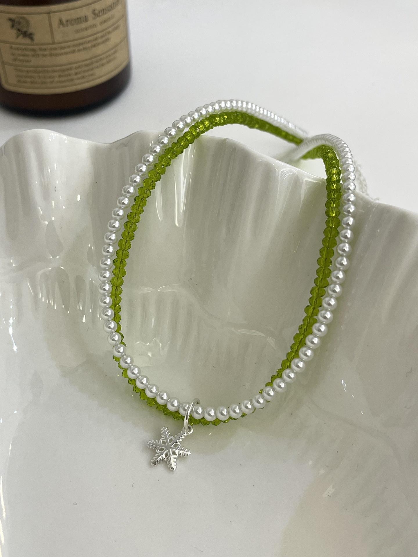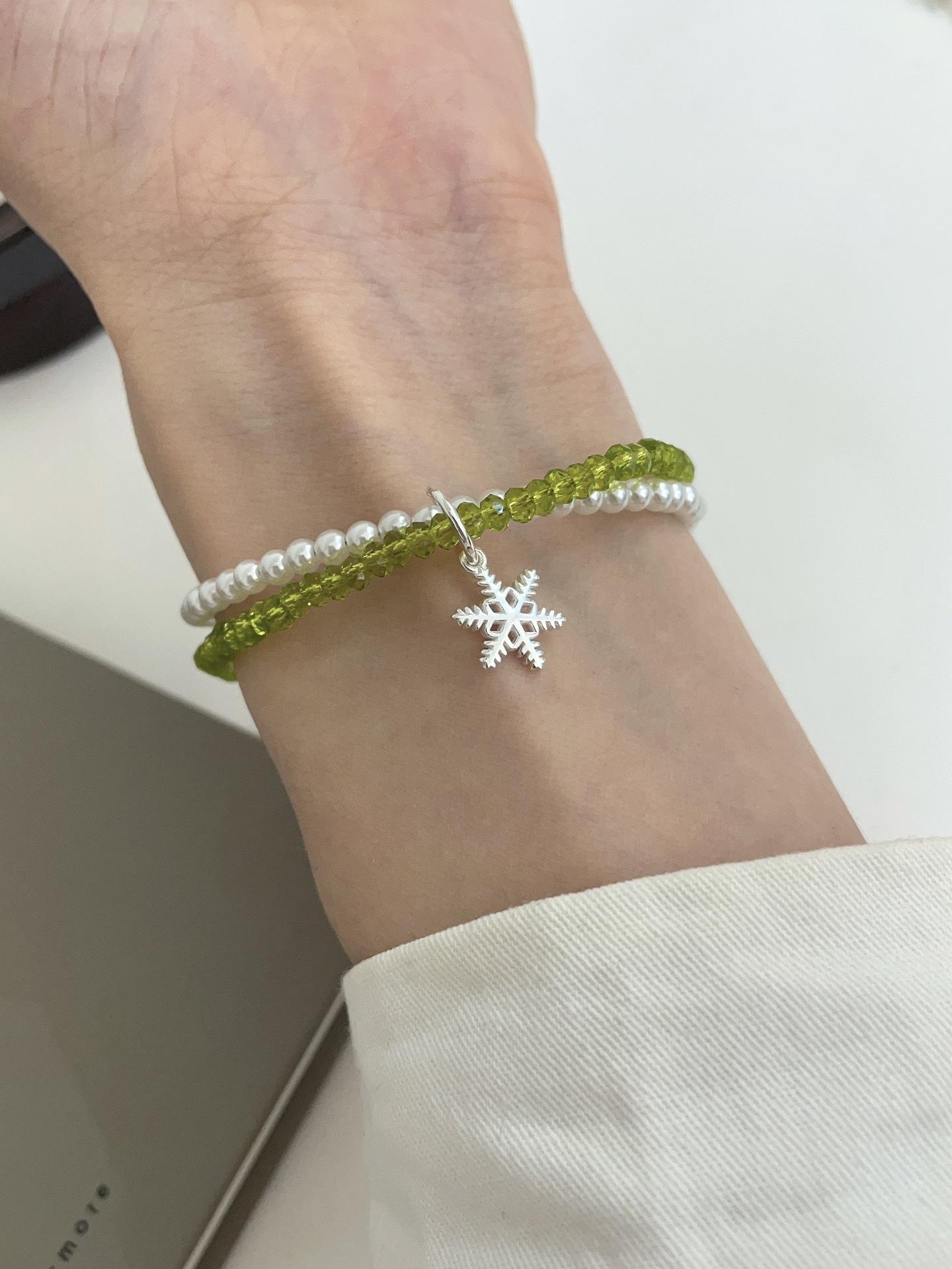 Collar y pulsera de plata de ley S925 con forma de copo de nieve, color verde oliva y perla Shijia de doble capa, ideal para combinar con todo.