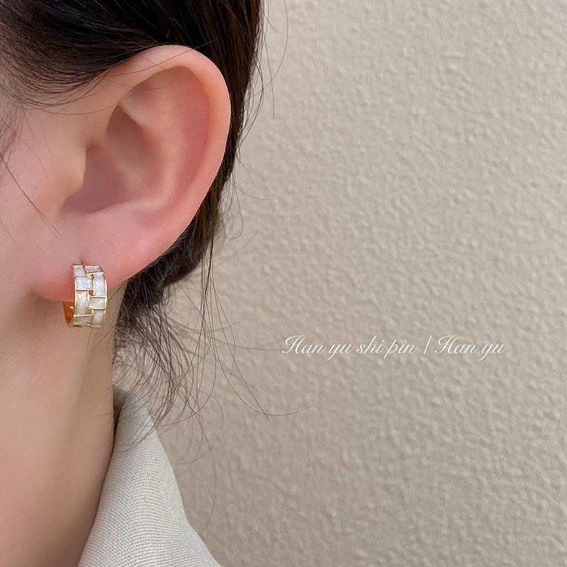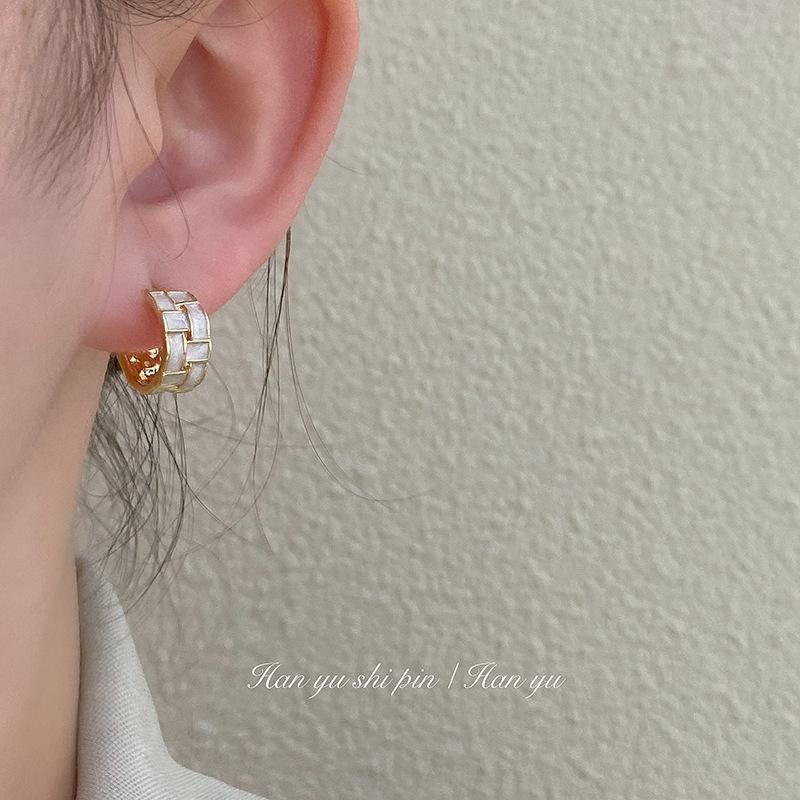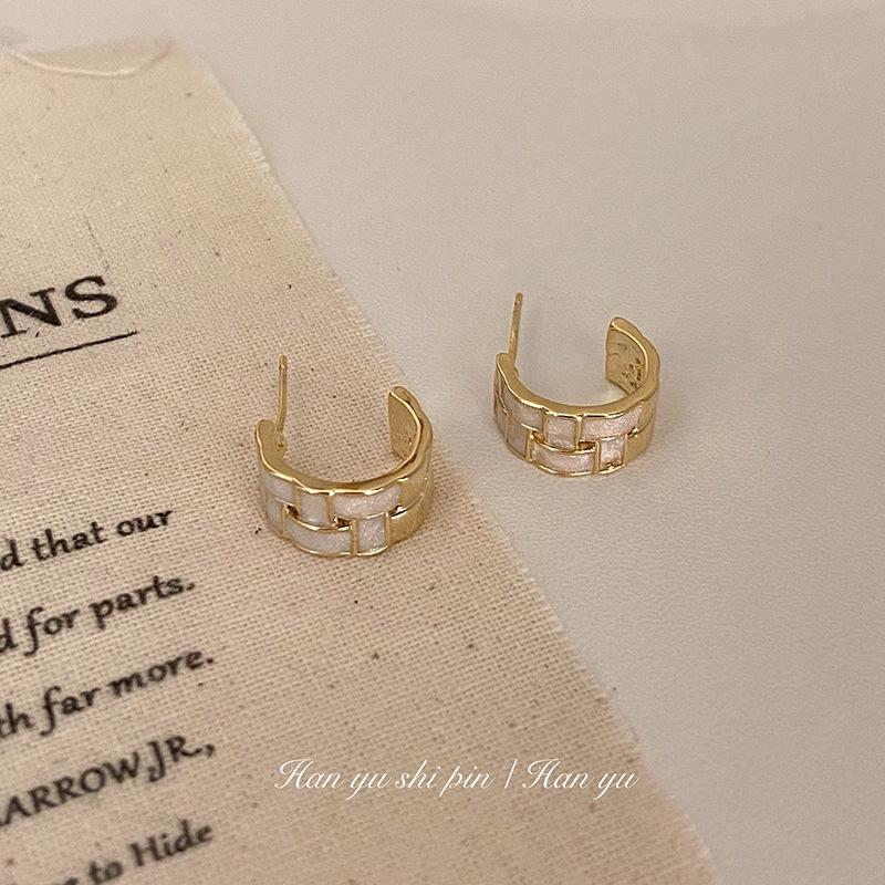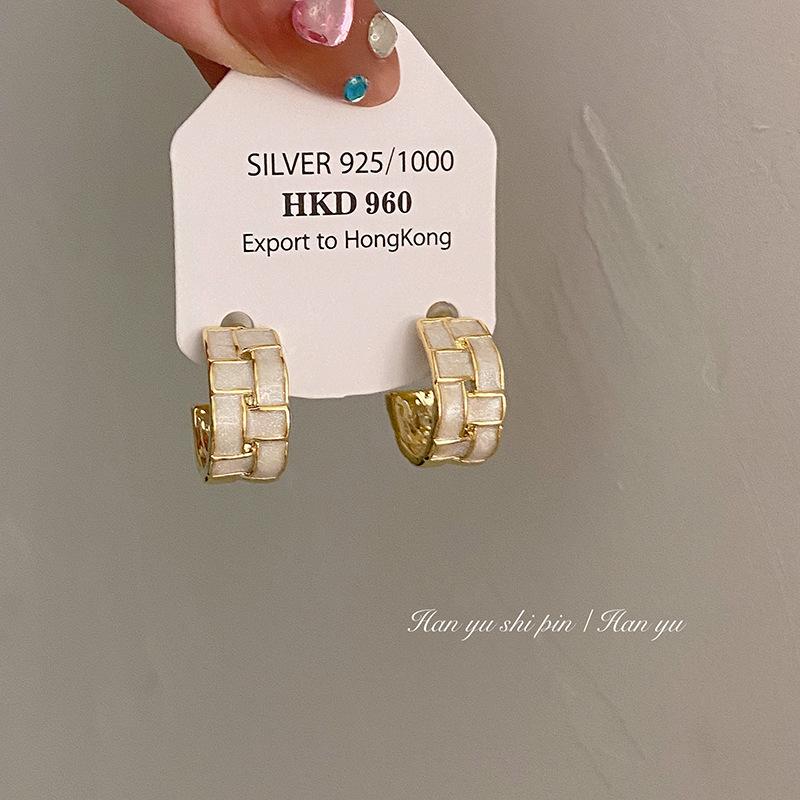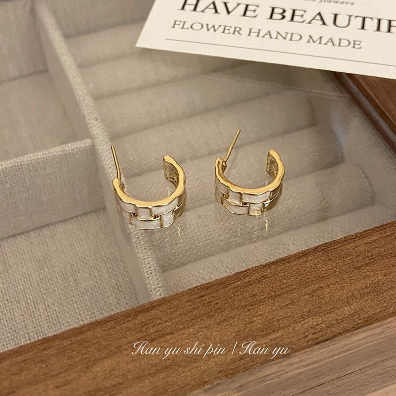 Pendientes de metal con forma de C, tejidos con gotas de aceite blanco, para mujer, con diseño de nicho francés, personalizados, sencillos y elegantes a juego.