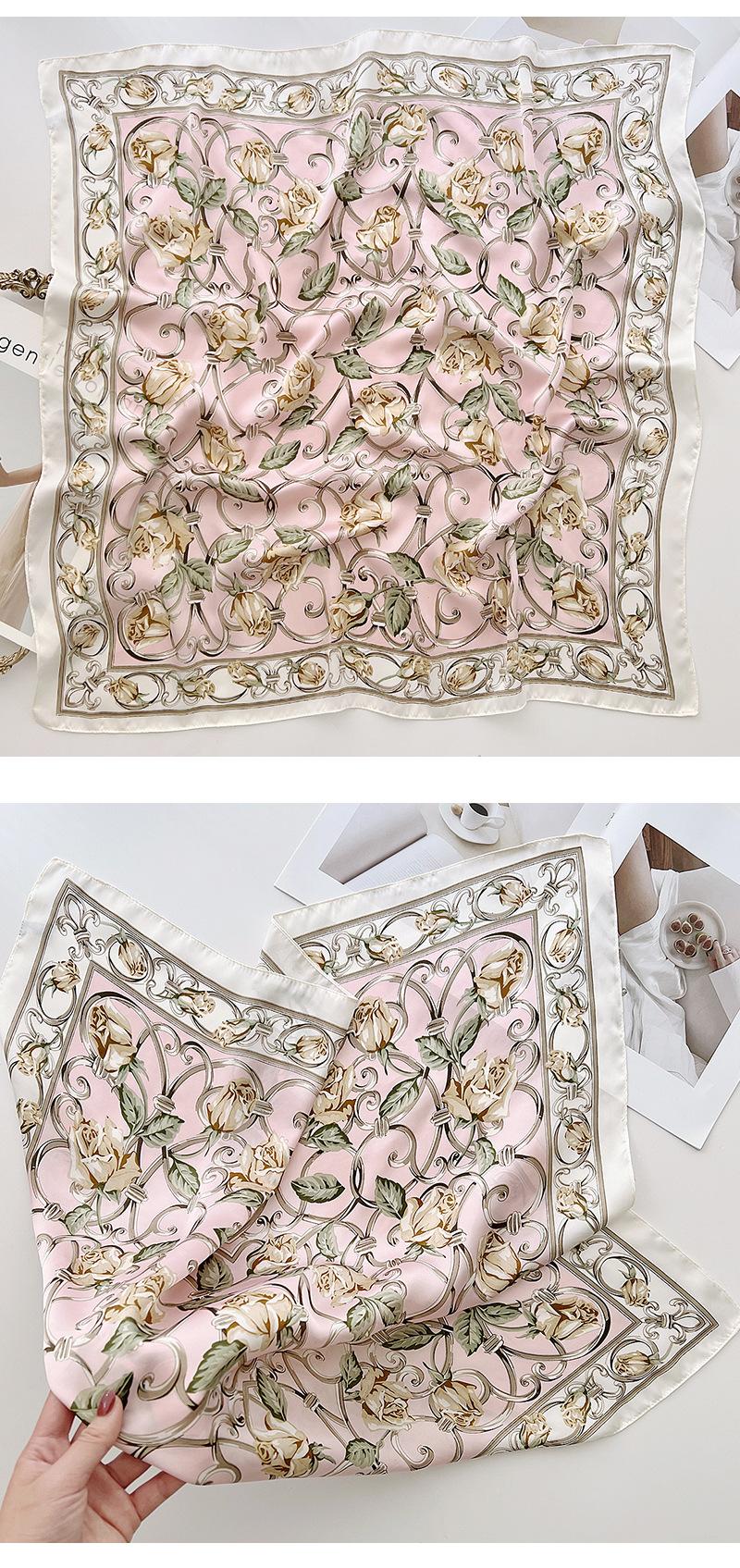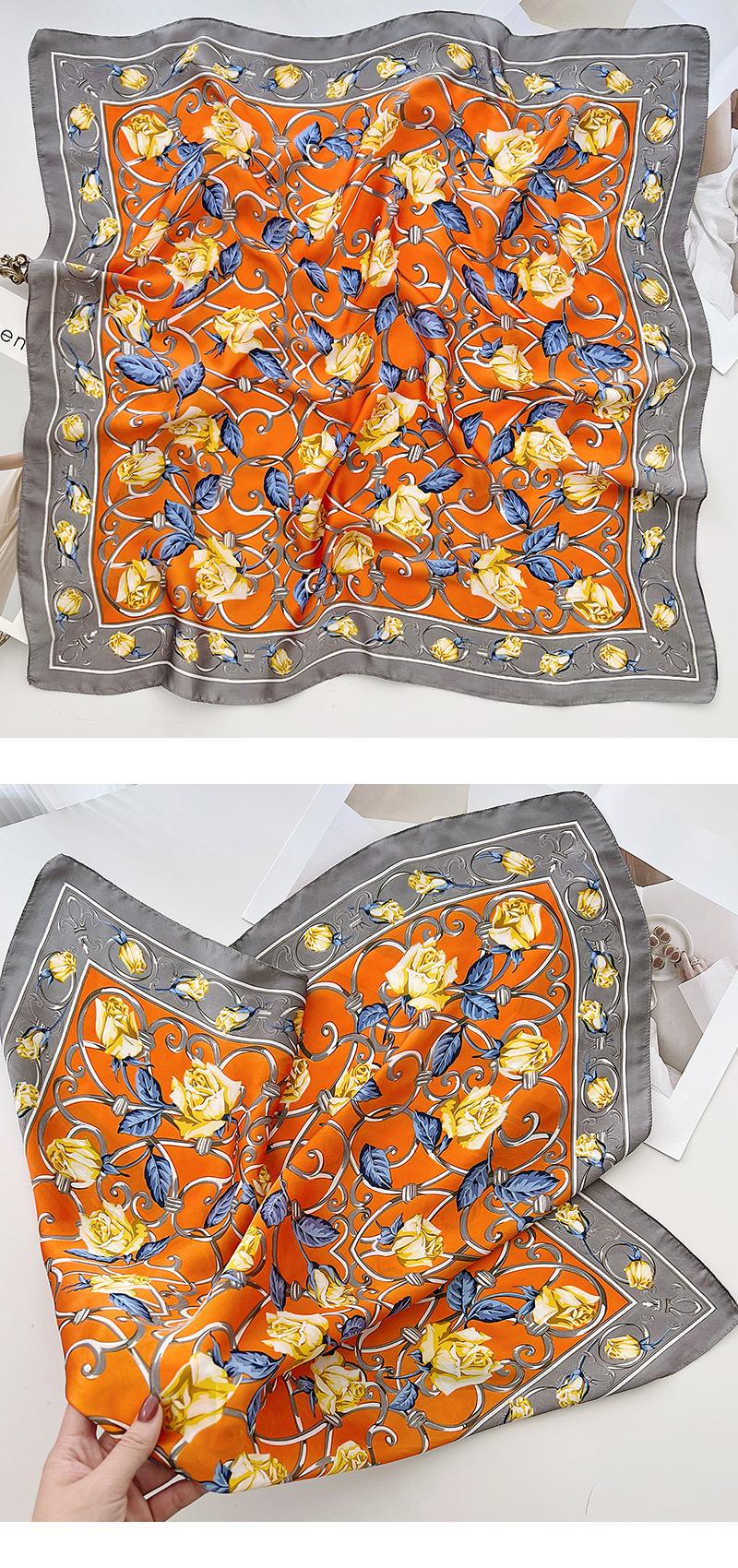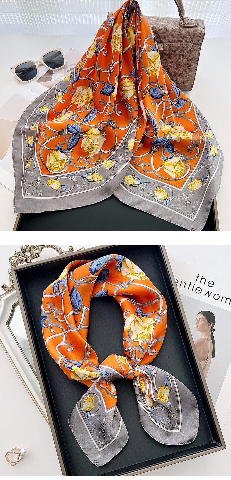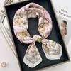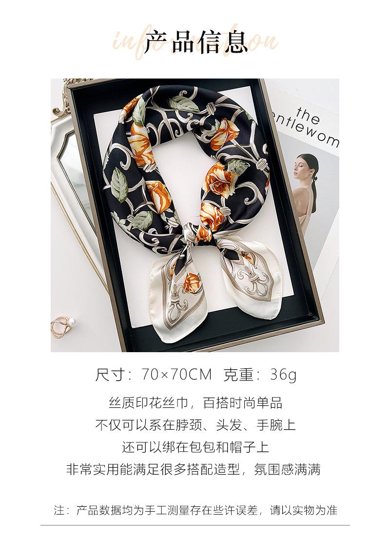Bufanda de seda estampada estilo coreano para mujer, nueva, fina, cuadrada, de primavera y verano, combina con todo, con lazo multifuncional para el pelo.