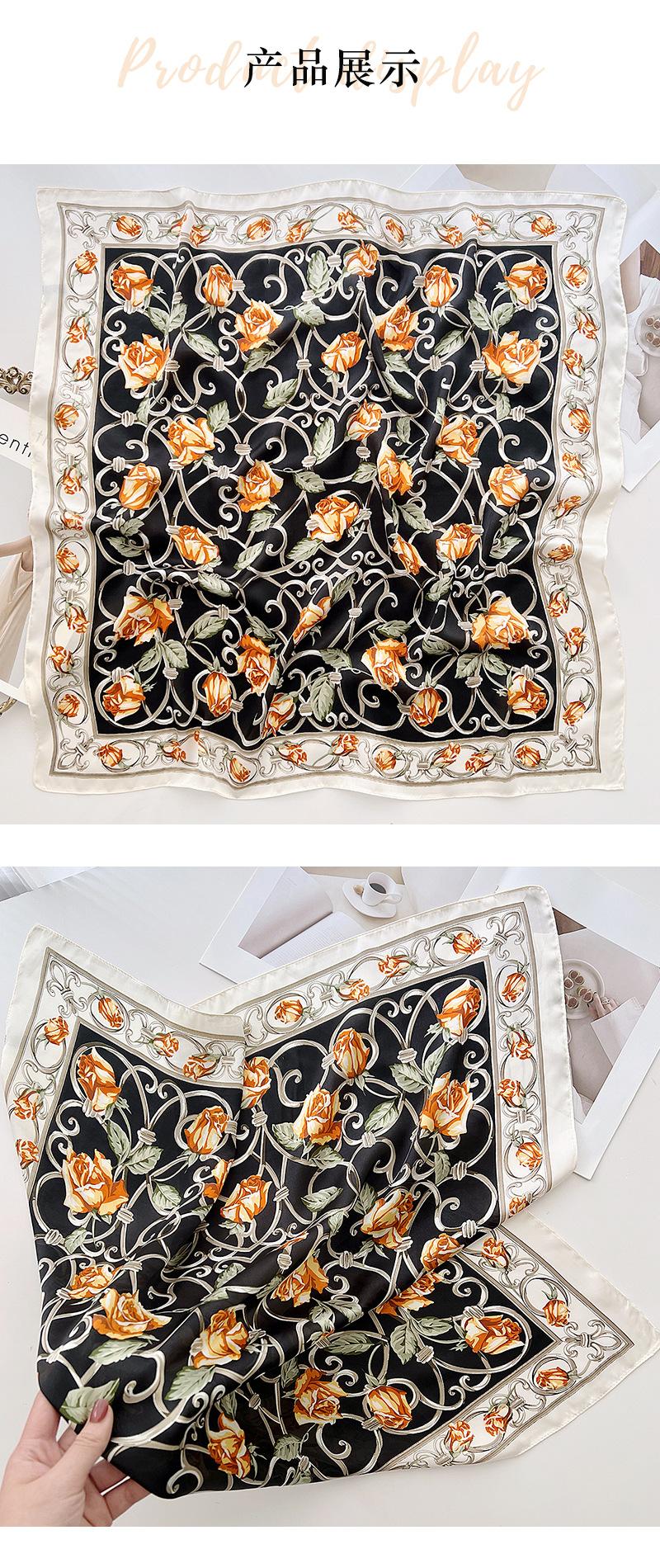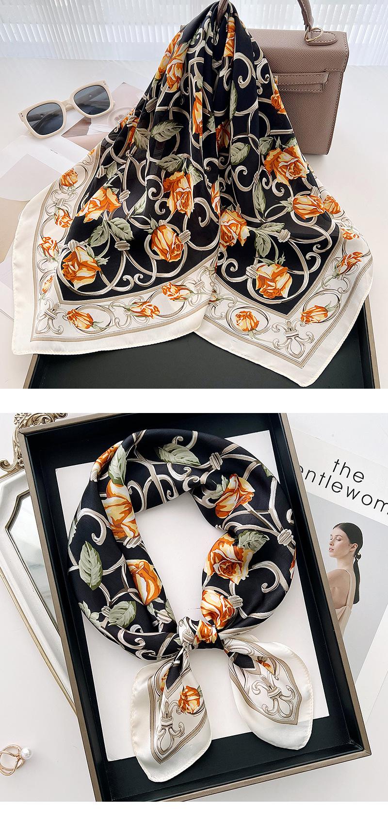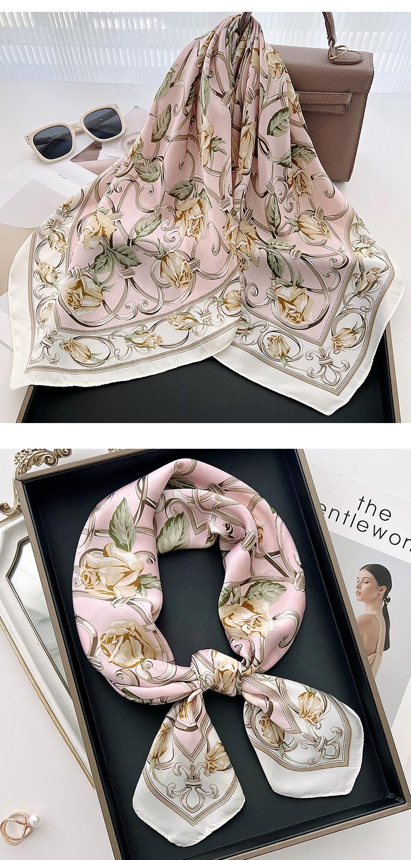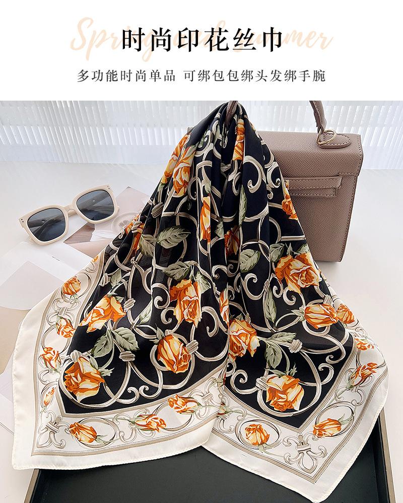 Bufanda de seda estampada estilo coreano para mujer, nueva, fina, cuadrada, de primavera y verano, combina con todo, con lazo multifuncional para el pelo.