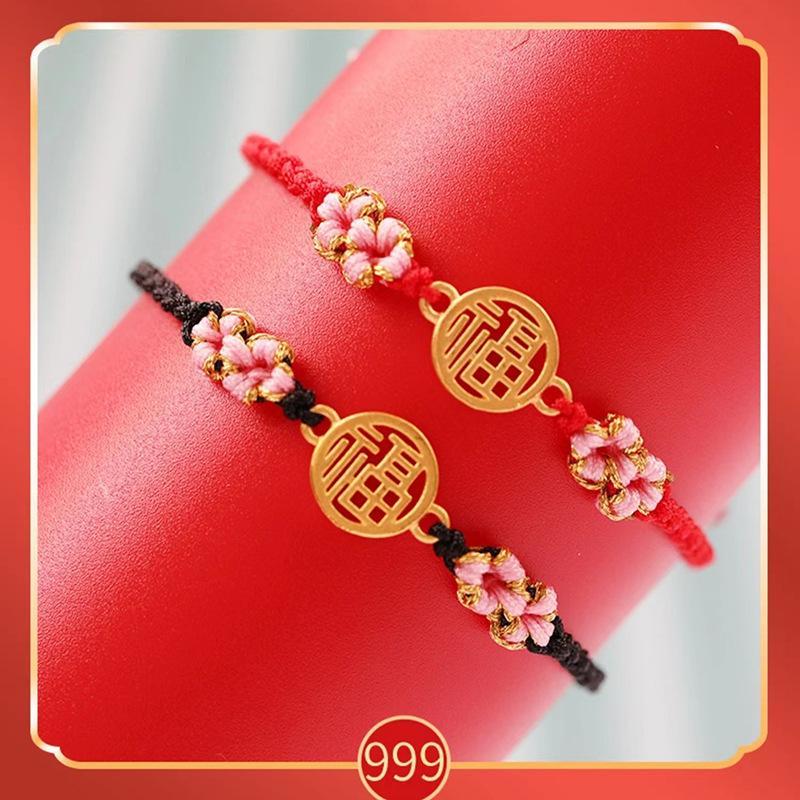 Transmisión en vivo mismo estilo pulsera con carácter fu Oro Vietnam Flor de Durazno pulsera para pareja Artesanía de Oro duro 3D Pulsera marca Fu tejida