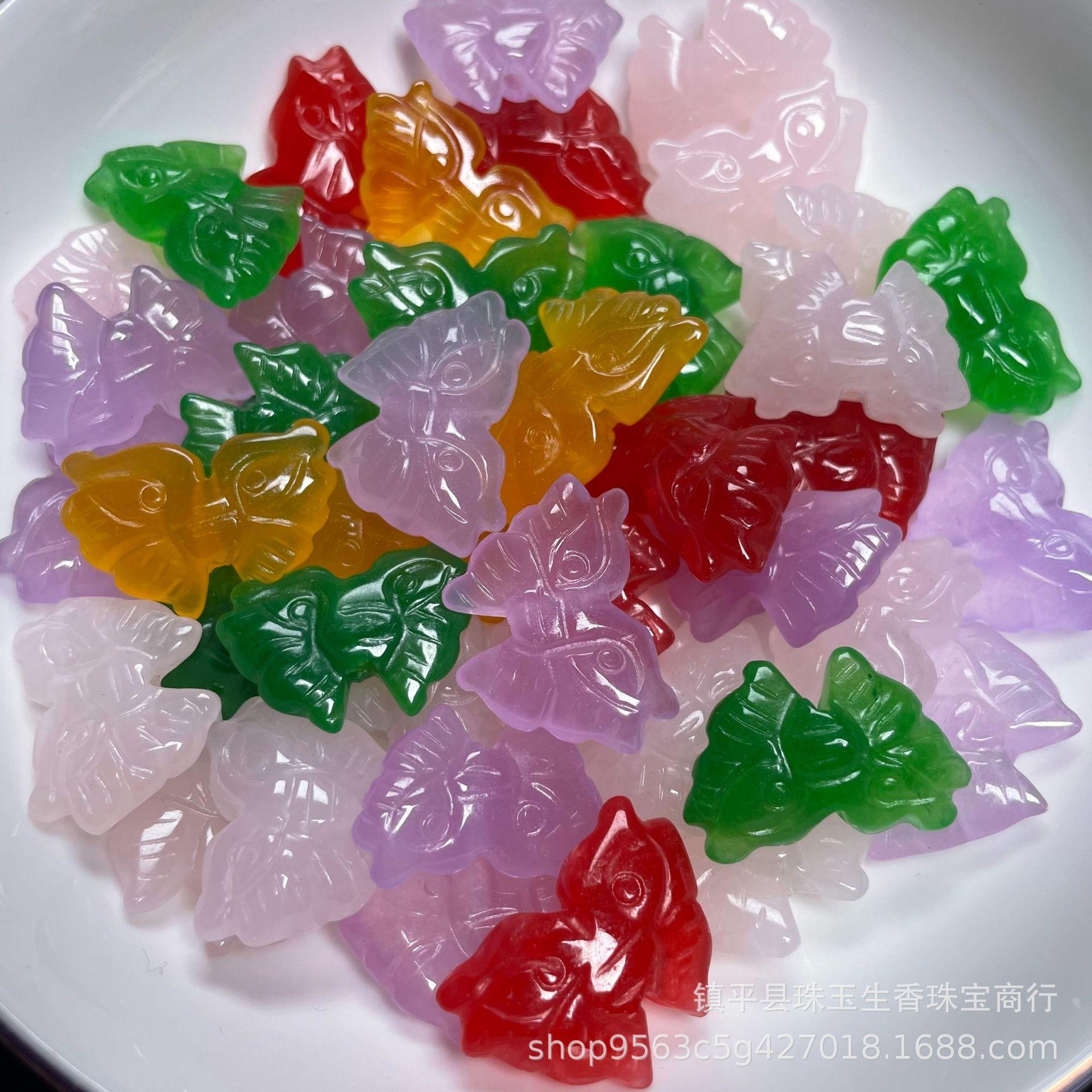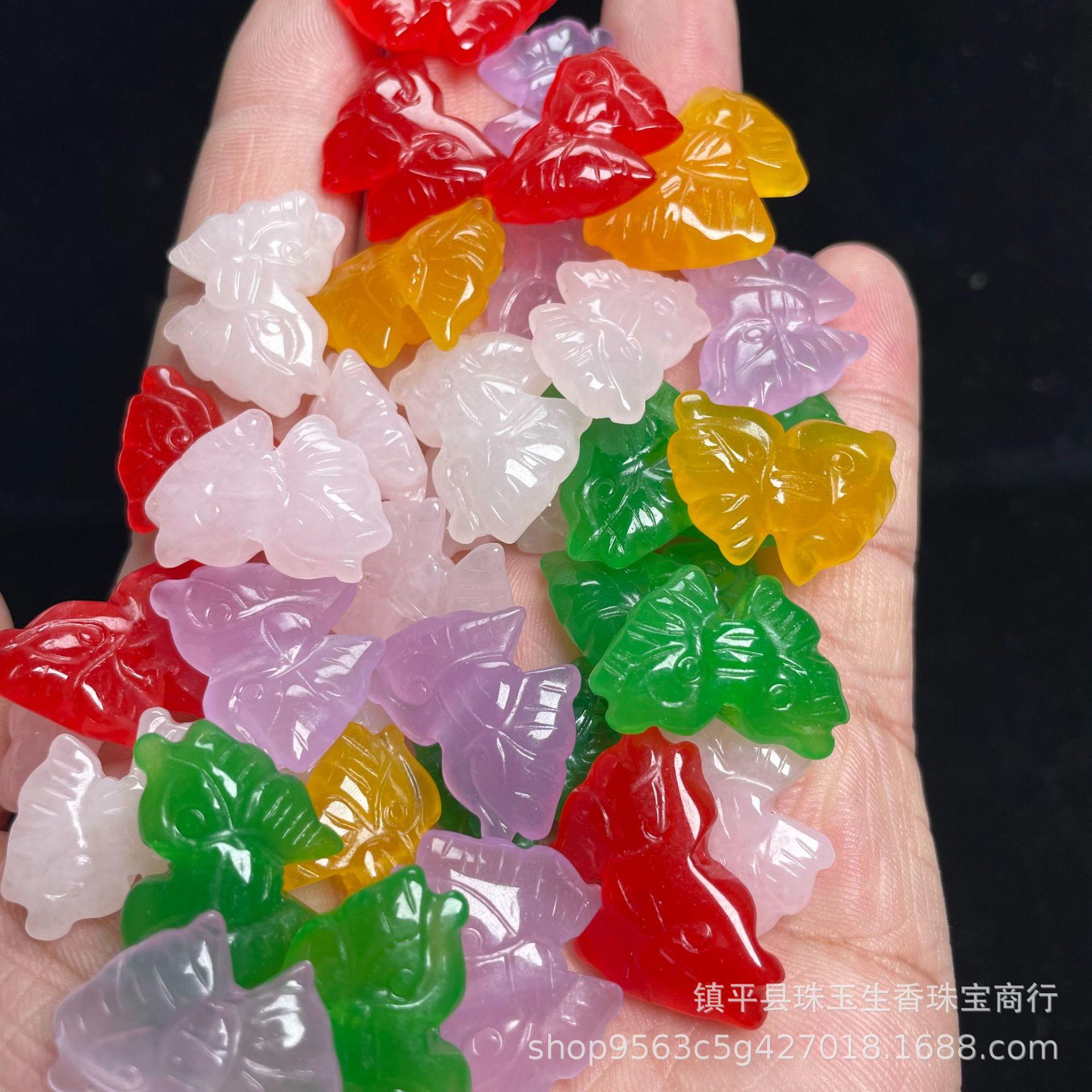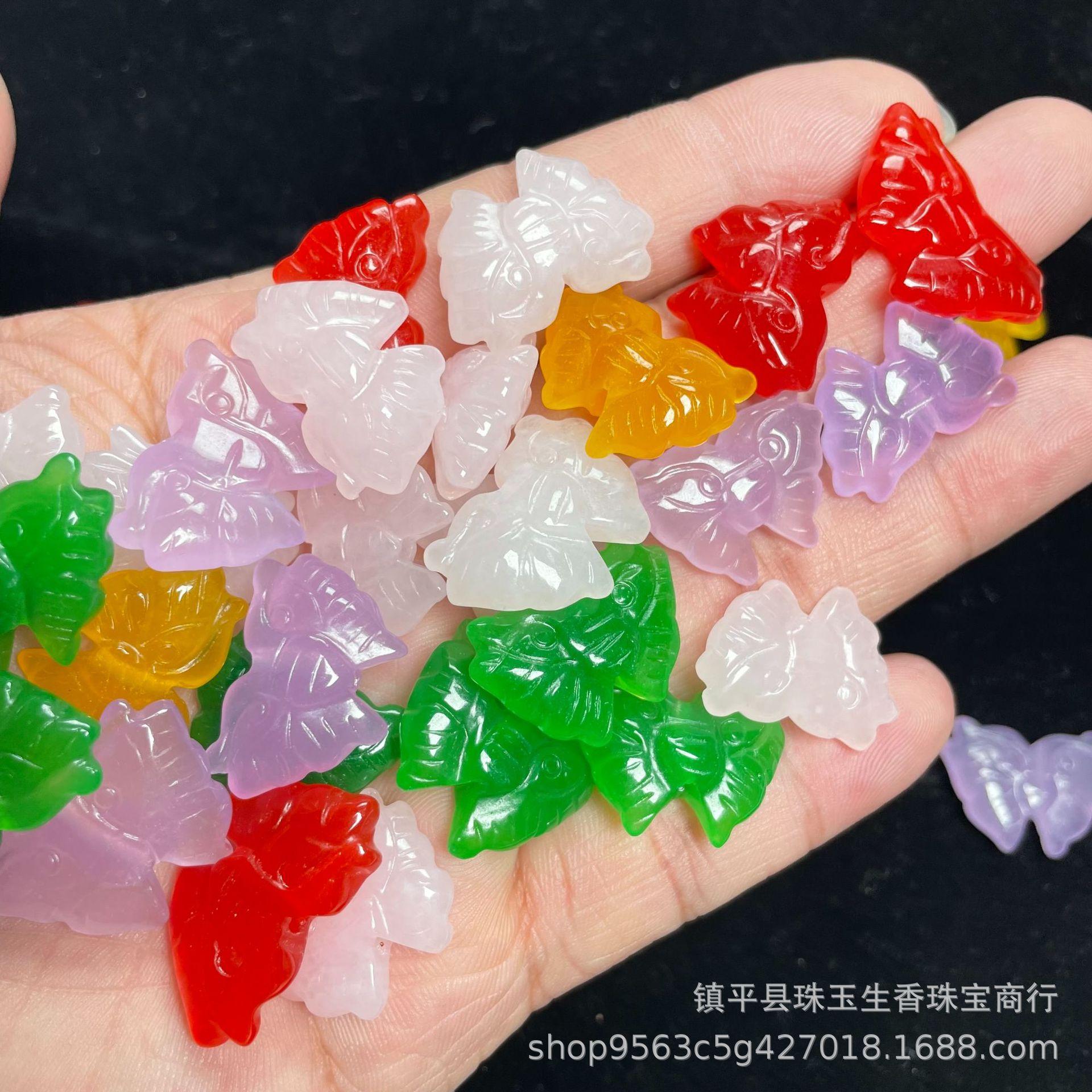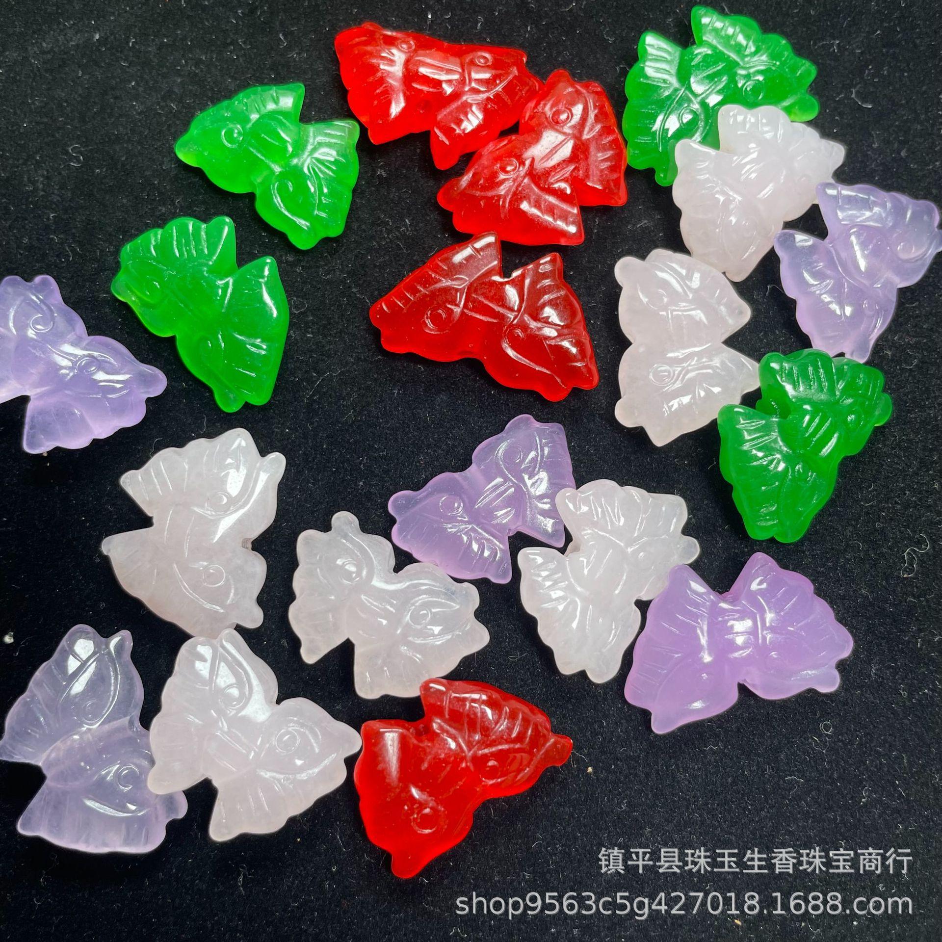 Cuentas sueltas de jade malayo de cuatro colores con forma de mariposa, con agujeros superiores e inferiores, accesorios de joyería de jade para manualidades, pulseras y collares, venta al por mayor