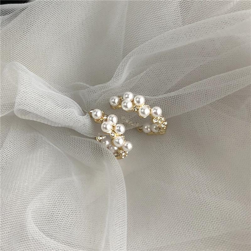 Pendientes retro de estilo frío Ins Super Fairy Elegantes pendientes de perla tipo C con diamantes para mujer