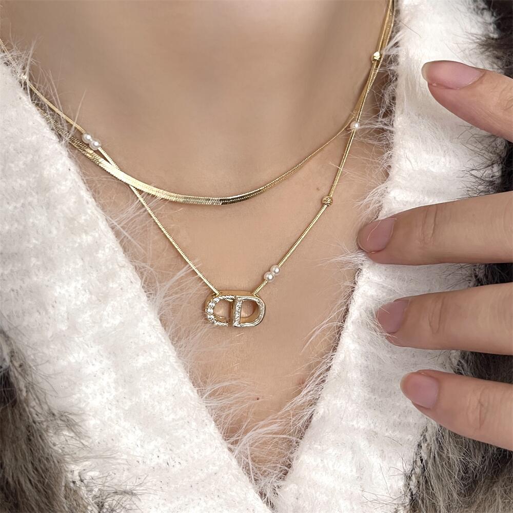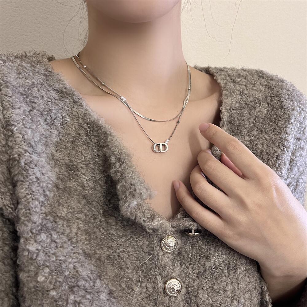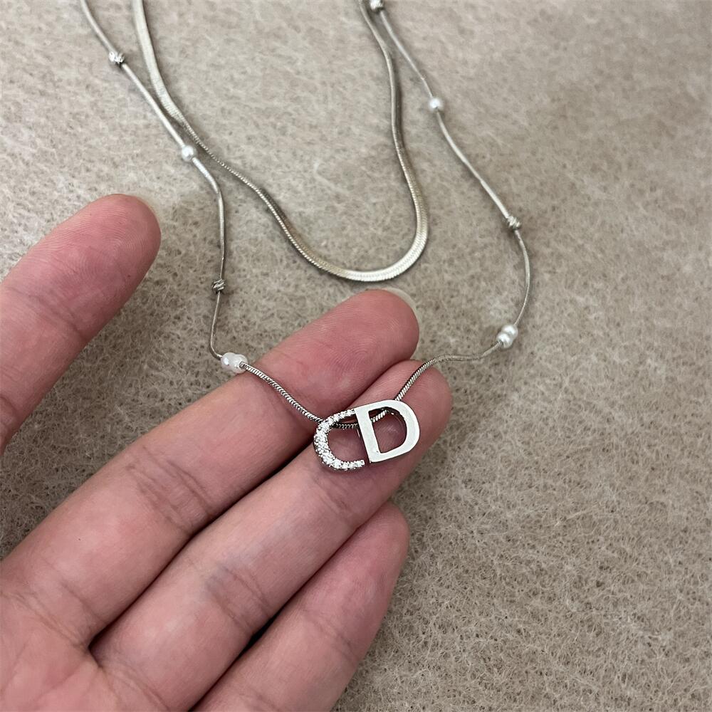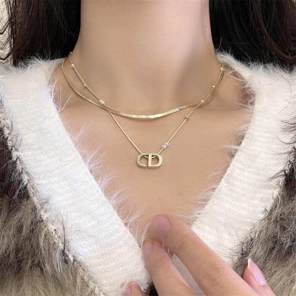 Collar con letra CD para mujer, cadena de clavícula de doble capa, nuevo y popular collar con cadena de hueso de serpiente, cadena de suéter, collar de celebridades en línea de alta calidad