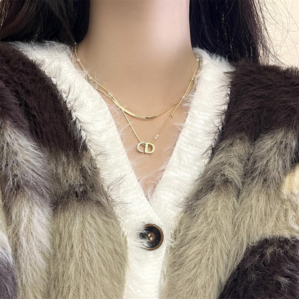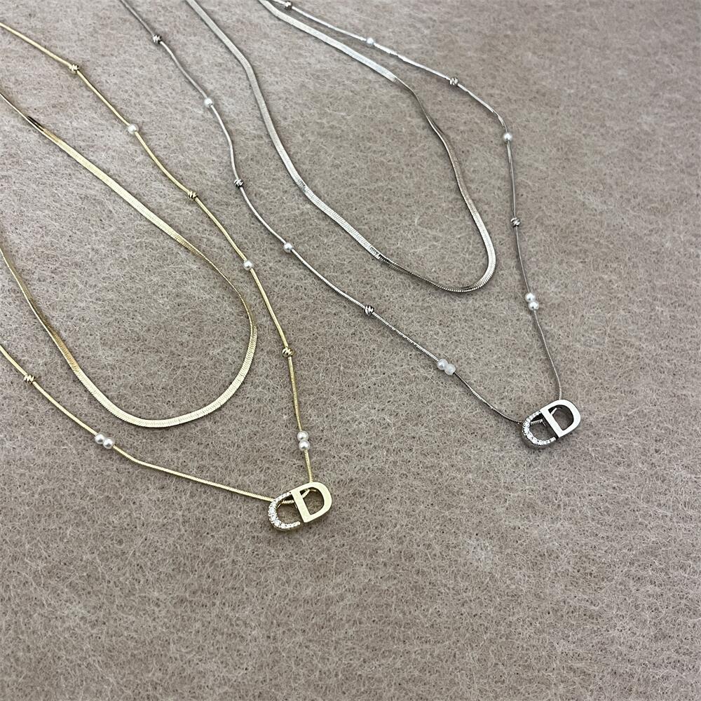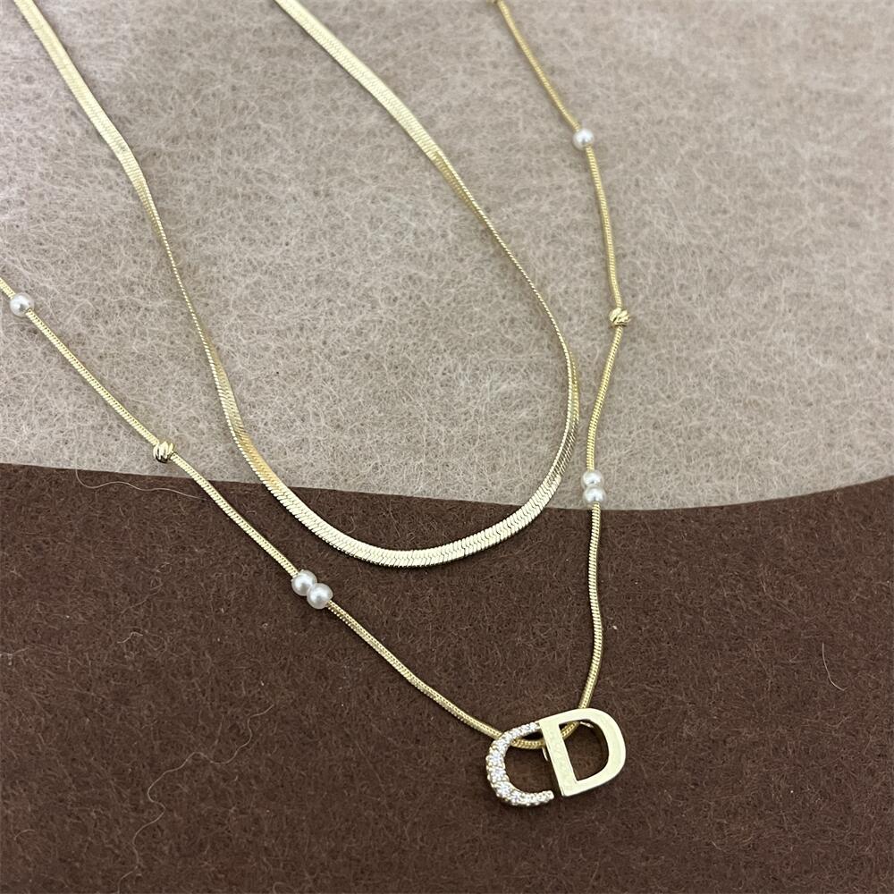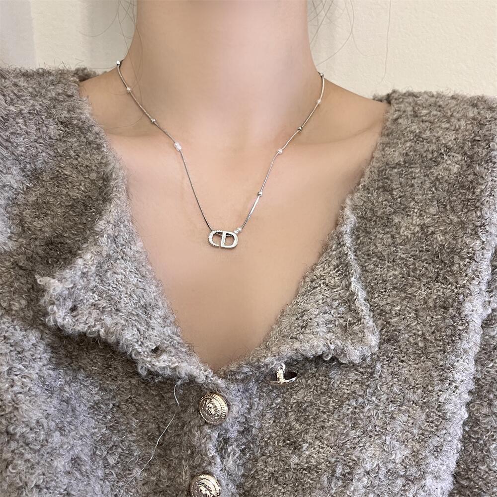 Collar con letra CD para mujer, cadena de clavícula de doble capa, nuevo y popular collar con cadena de hueso de serpiente, cadena de suéter, collar de celebridades en línea de alta calidad