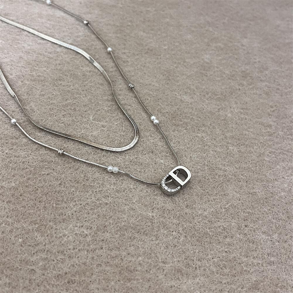 Compra Collar con letra CD para mujer, cadena de clavícula de doble capa, nuevo y popular collar con cadena de hueso de serpiente, cadena de suéter, collar de celebridades en línea de alta calidad al por mayor en Joom.pro