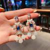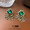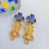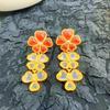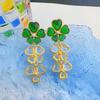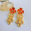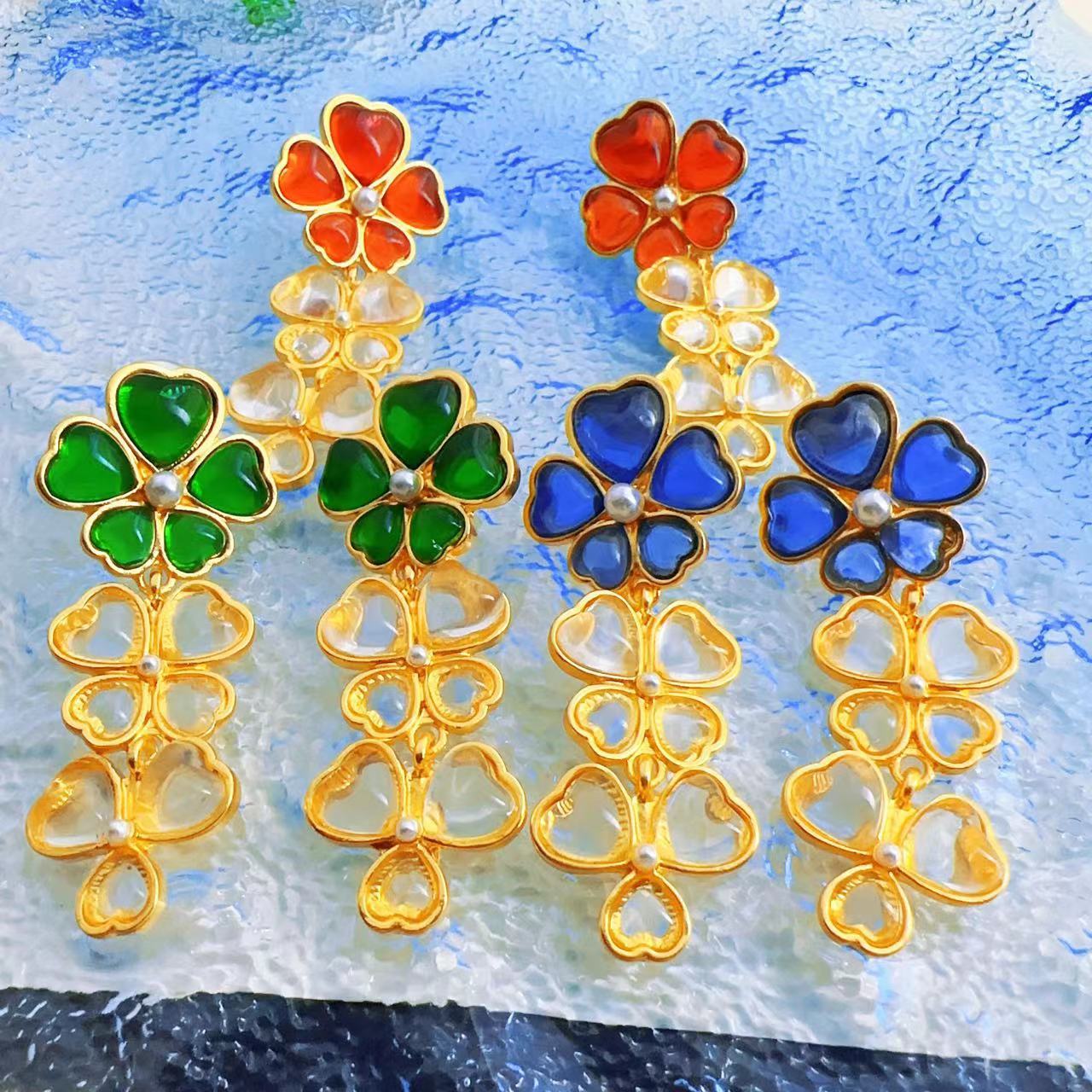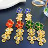 Pendientes de flor de amor vintage medieval para mujer, estilo retro de corte, pendientes largos de cuatro hojas con degradado