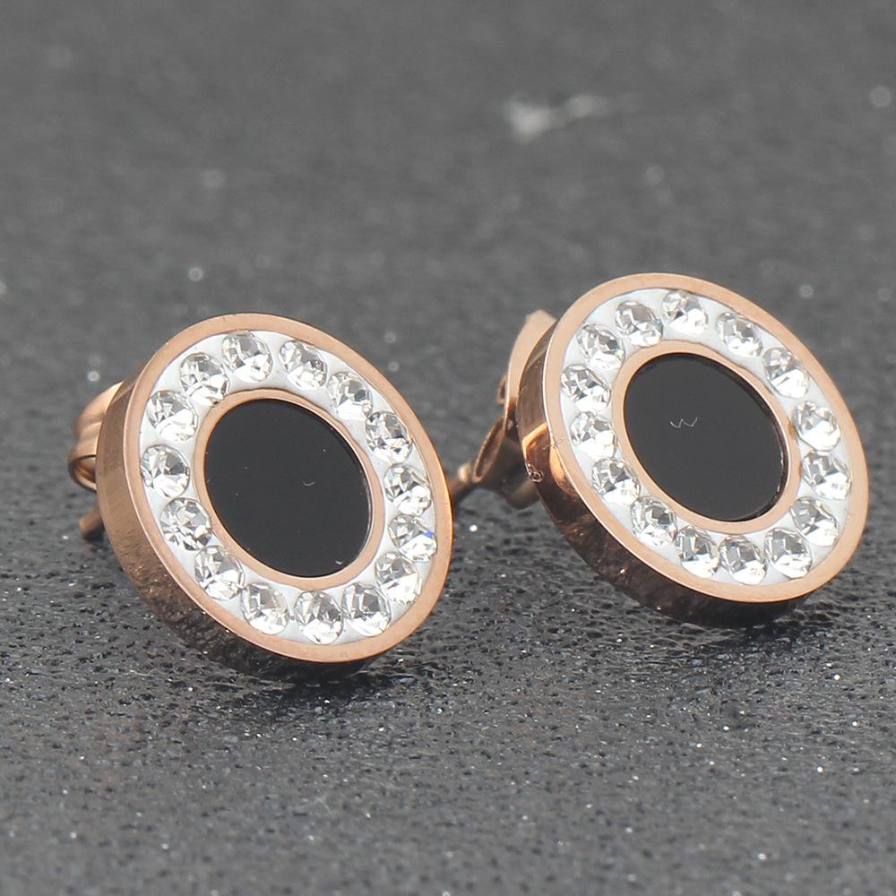 Pendientes Europeos y Americanos de Nuevo Estilo de 12 mm Creativos Geométricos Redondos de Acero de Titanio Diamante Epoxi Moda Simple para Mujer Acero Inoxidable Mayoreo