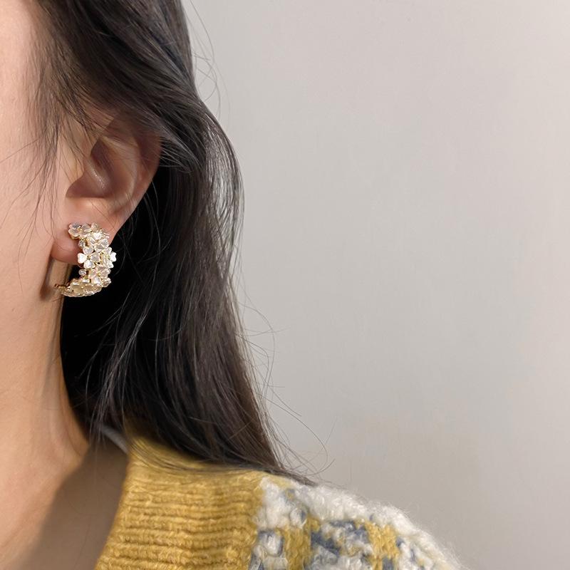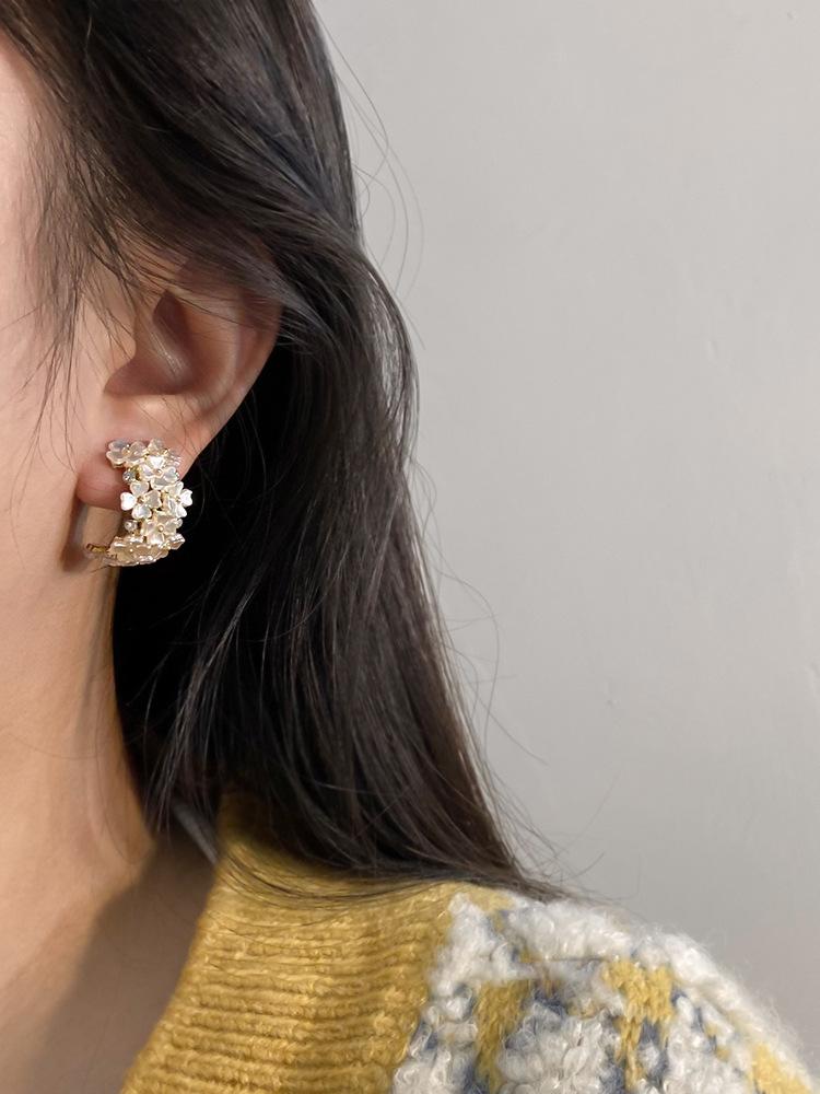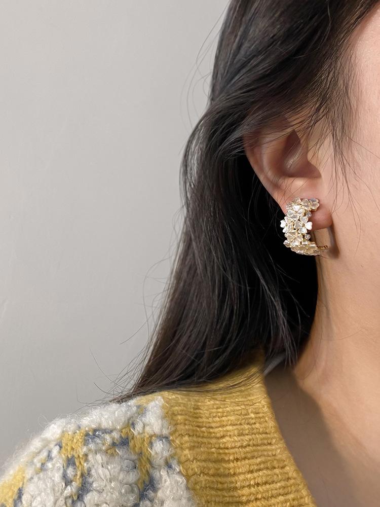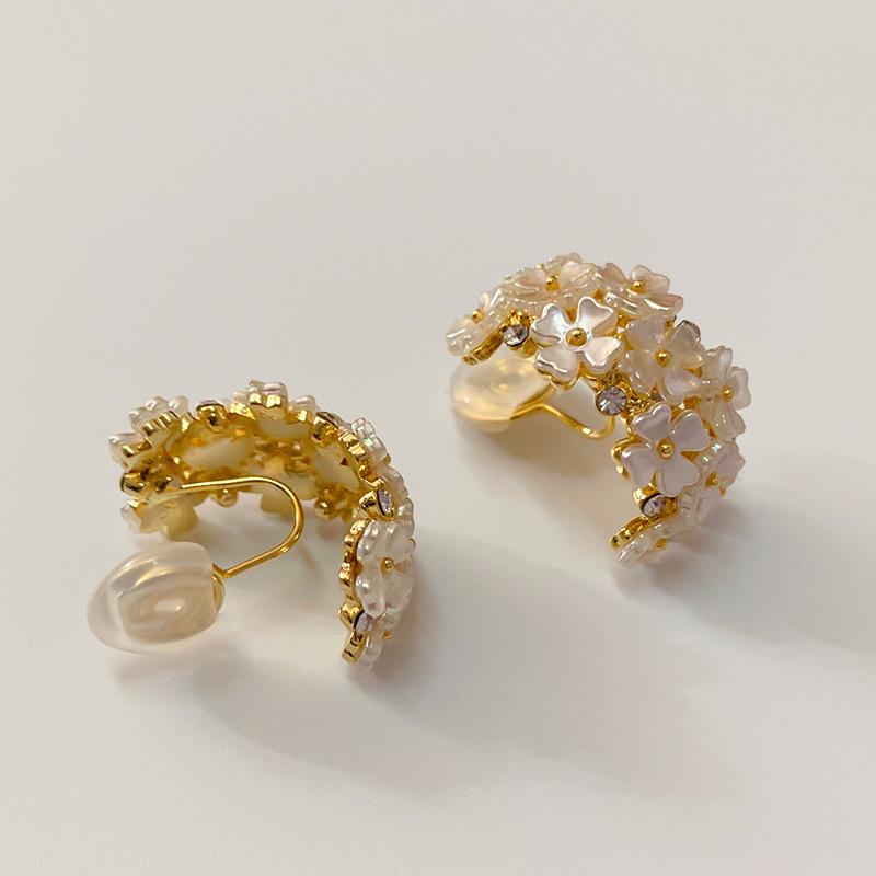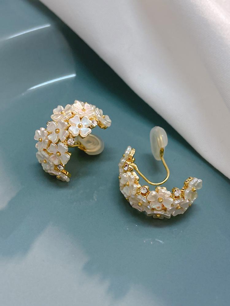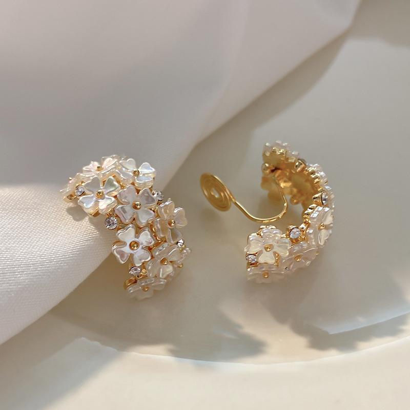 Aretes de clip de disco de espiral para mosquitos sin perforación para mujer, aretes de flor de concha de alta gama, estilo 2022, elegantes, modernos y versátiles