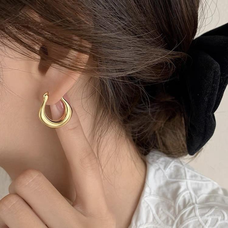 Pendientes de aro sencillos con diseño de nicho, sentido avanzado 2024, nuevos pendientes de estilo, pequeños pendientes de aro grueso, minimalistas, con hebilla de oreja, moda femenina