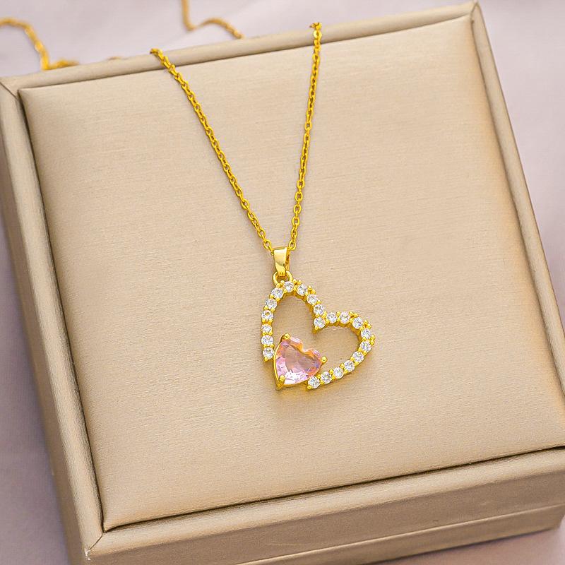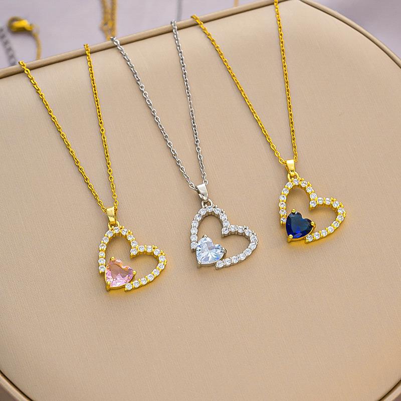 Collar de circonita con forma de corazón de amor de lujo ligero transfronterizo europeo y americano para mujer, cadena de clavícula con temperamento de nicho de moda simple, suministro de accesorios al por mayor