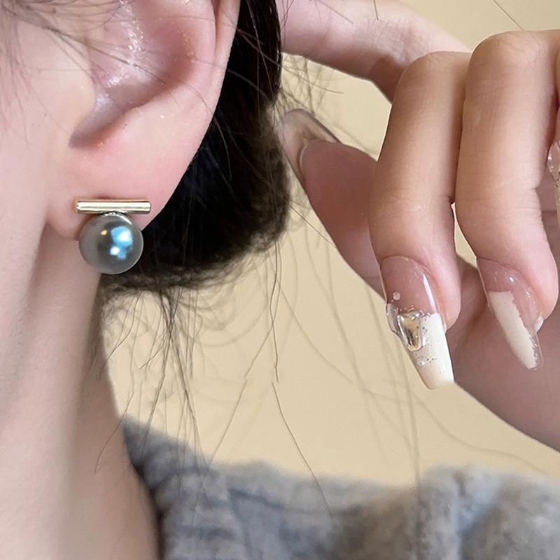 Pendientes de perla gris con diseño de nicho para mujer, elegantes y retro de alta calidad, nuevos y populares pendientes 2023