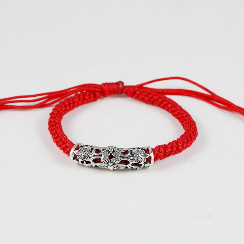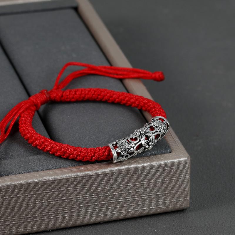 Nuevo Estilo Chino Envoltura Cubo de Flores Cuerda de Mano Pulsera de Pareja Nicho para Hombre y Mujer Cuerda de Plata Esterlina Cuerda Roja Regalo