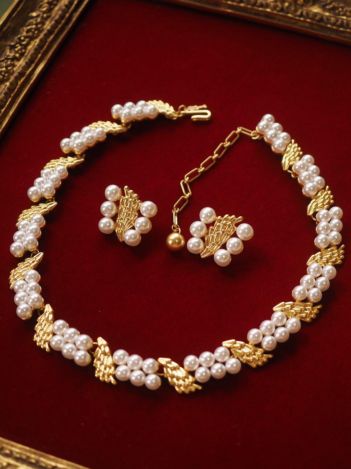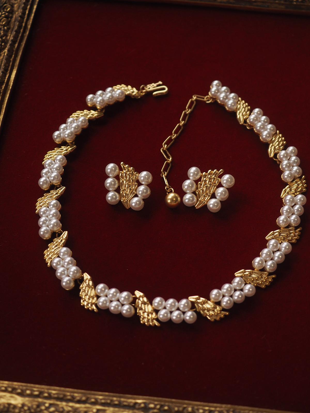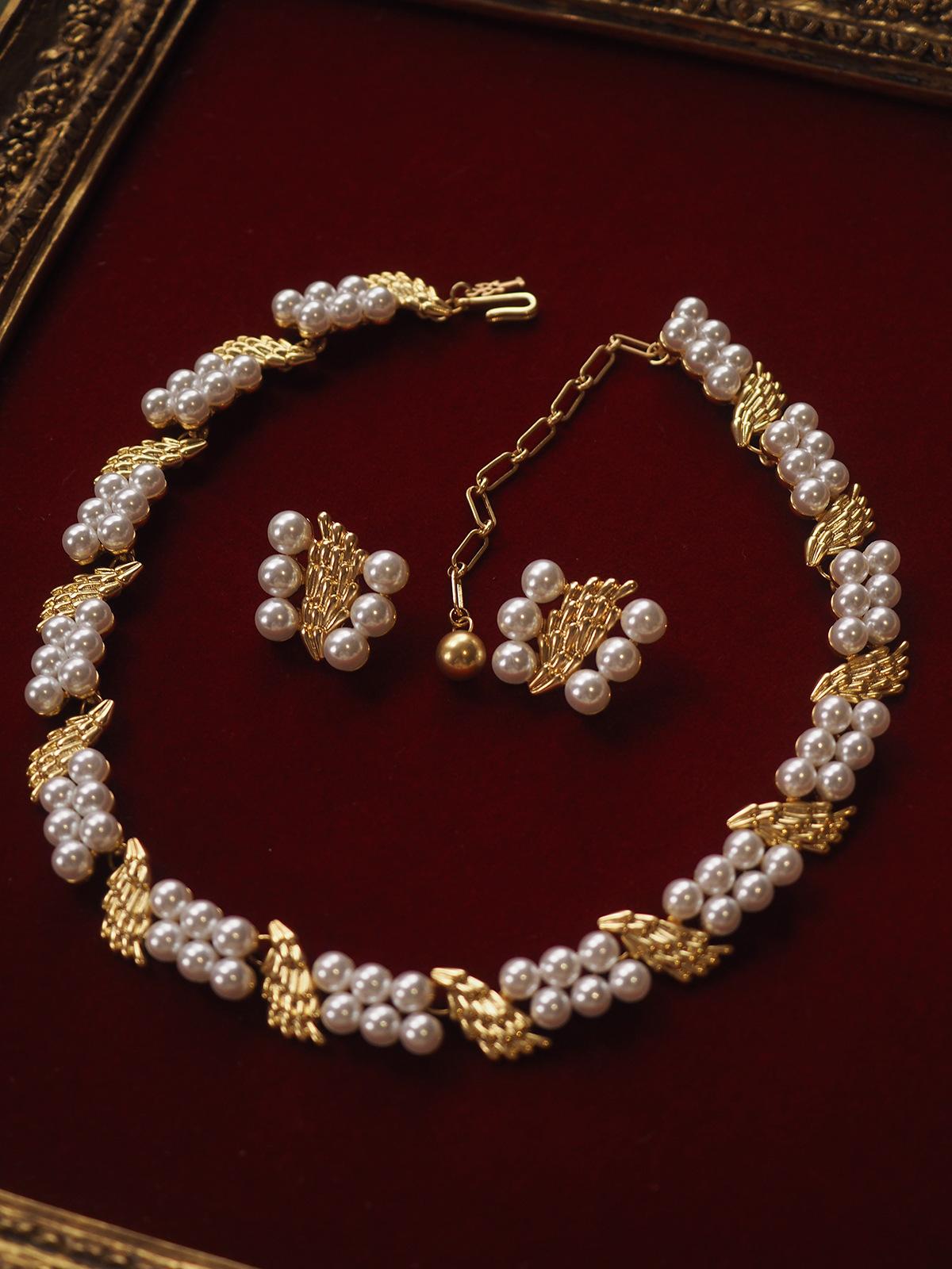 Clip para Oreja de Perla Retro Francés Lava Monet Cuifari Trifari Medio Antiguo Vintage Aretes Collar