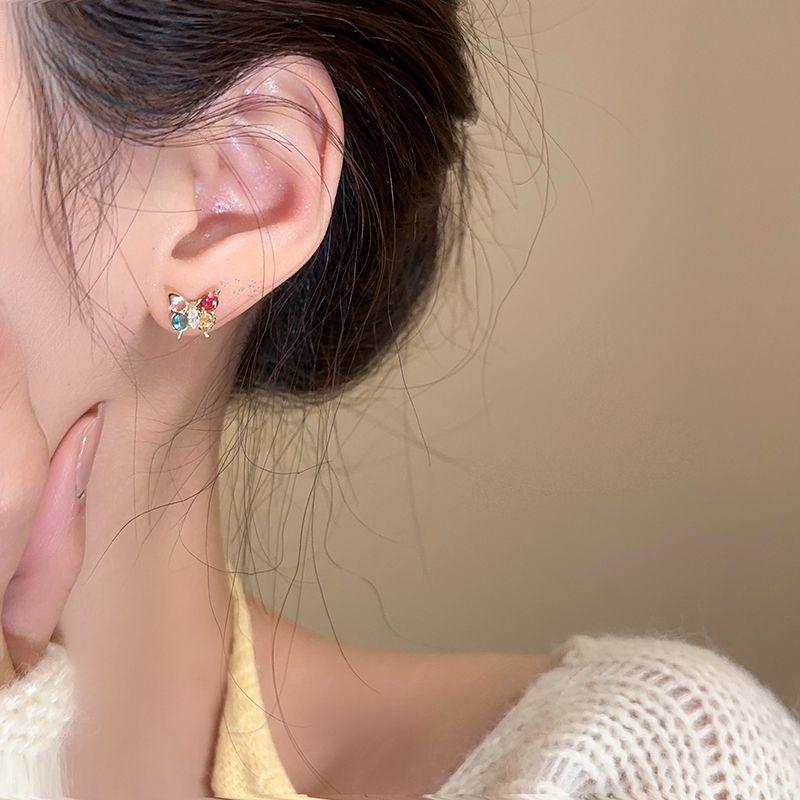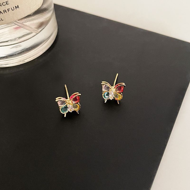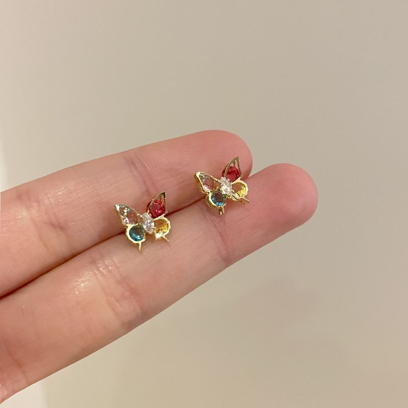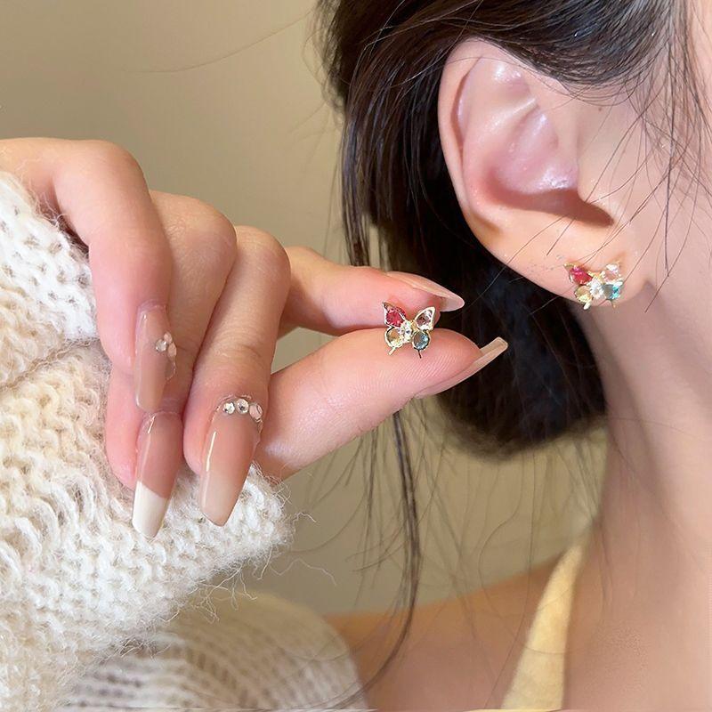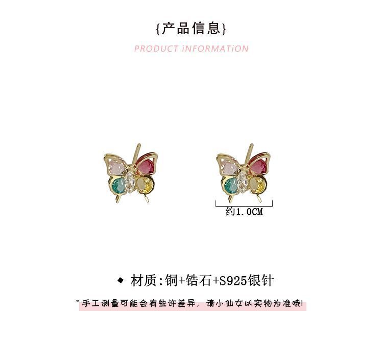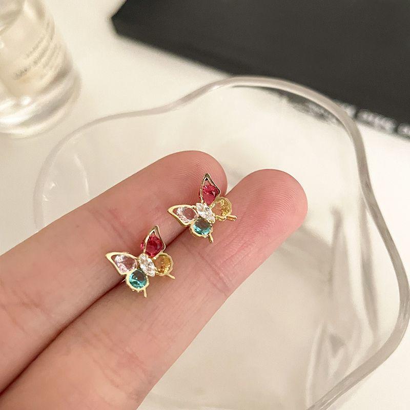 ¡Hermoso! Pendientes de mariposa de circonita de colores para mujer, elegantes y dulces de verano, con diseño de nicho, combinables con todo.