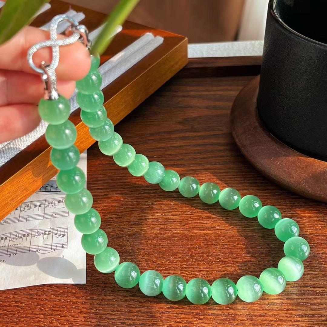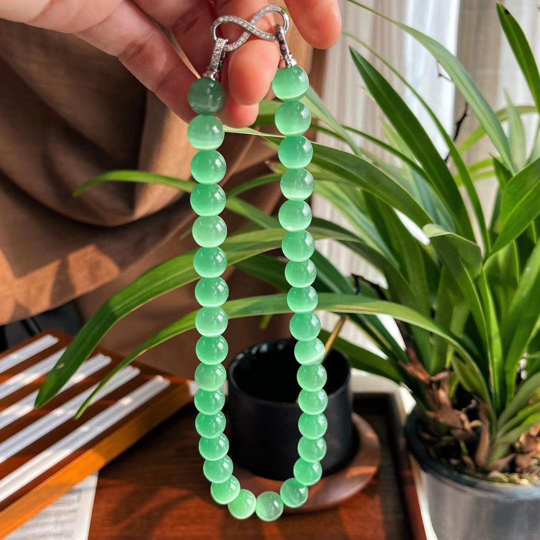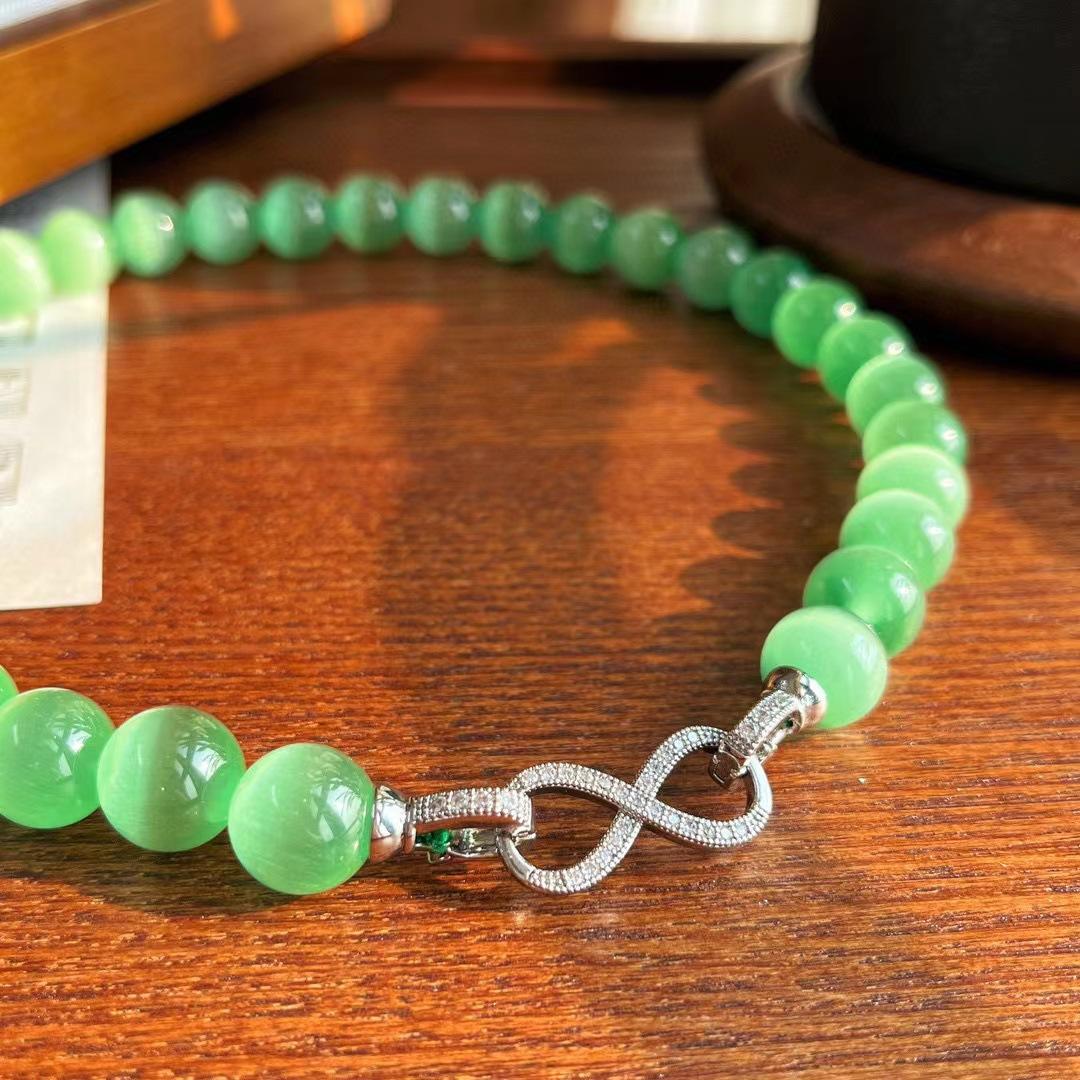 Cuerpo de gelatina verde fruta de verano romántico de 12 mm con delineador de ojos, collar de ópalo verde artificial, recomendación del propietario