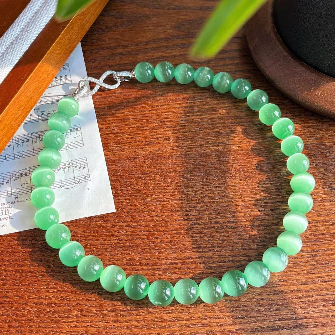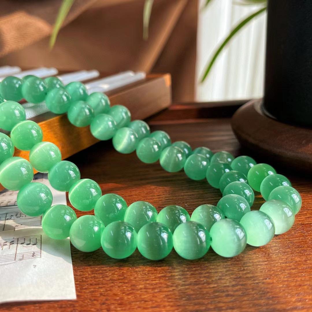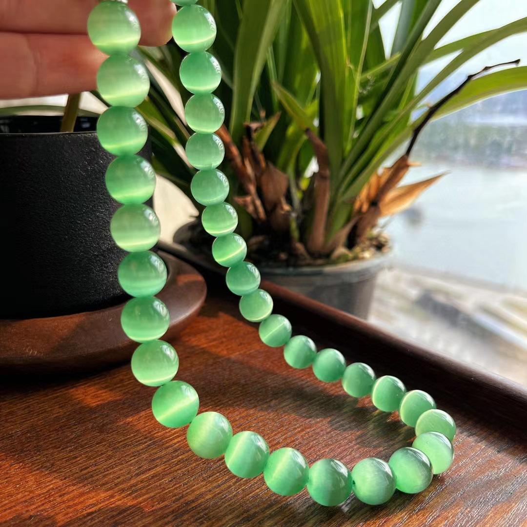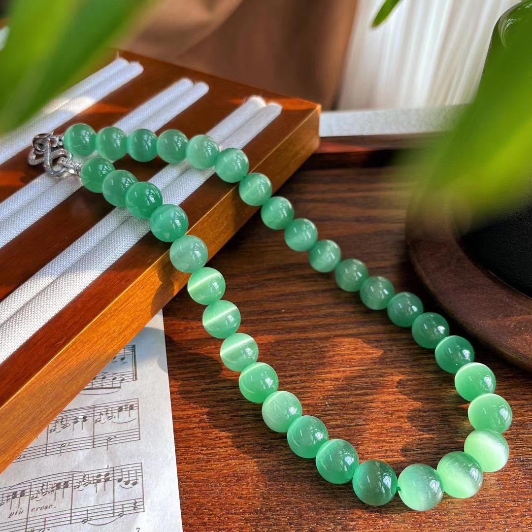 Cuerpo de gelatina verde fruta de verano romántico de 12 mm con delineador de ojos, collar de ópalo verde artificial, recomendación del propietario