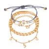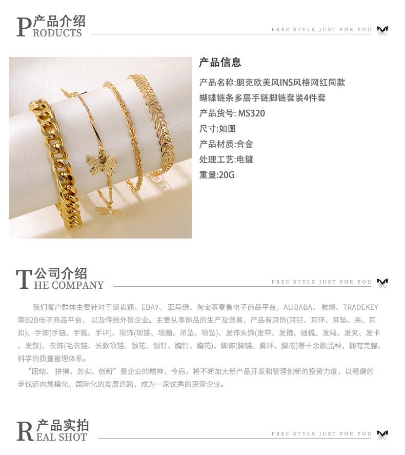 Conjunto de 4 pulseras y tobilleras multicapa con diseño de mariposa europea y americana de Mu Shang para mujer, pulsera de diseño de nicho vintage, venta al por mayor