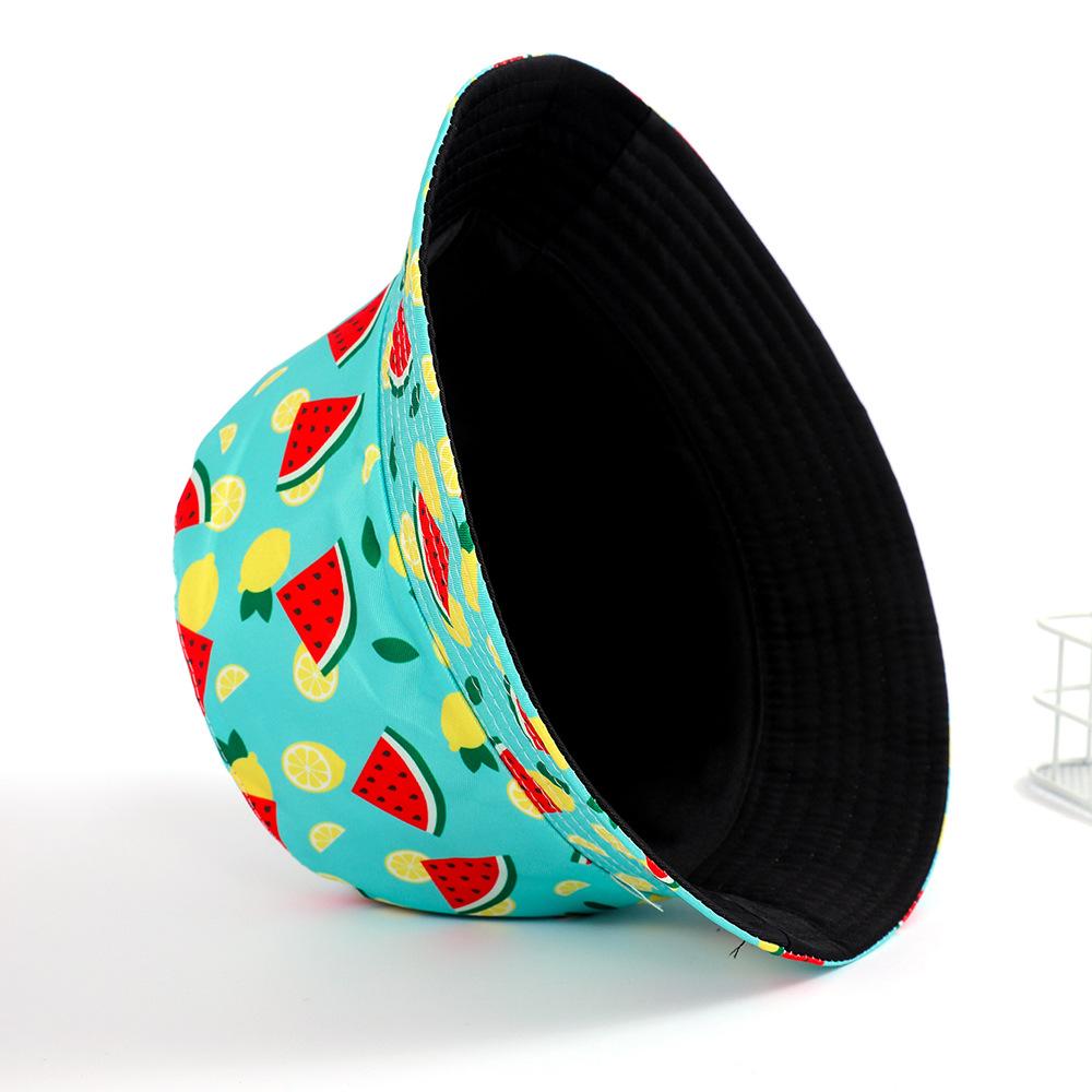 Sombrero de pescador con estampado de frutas creativo de 2023, para hombres y mujeres europeos y americanos, para actividades al aire libre, protector solar, sombrero de lavabo de doble cara